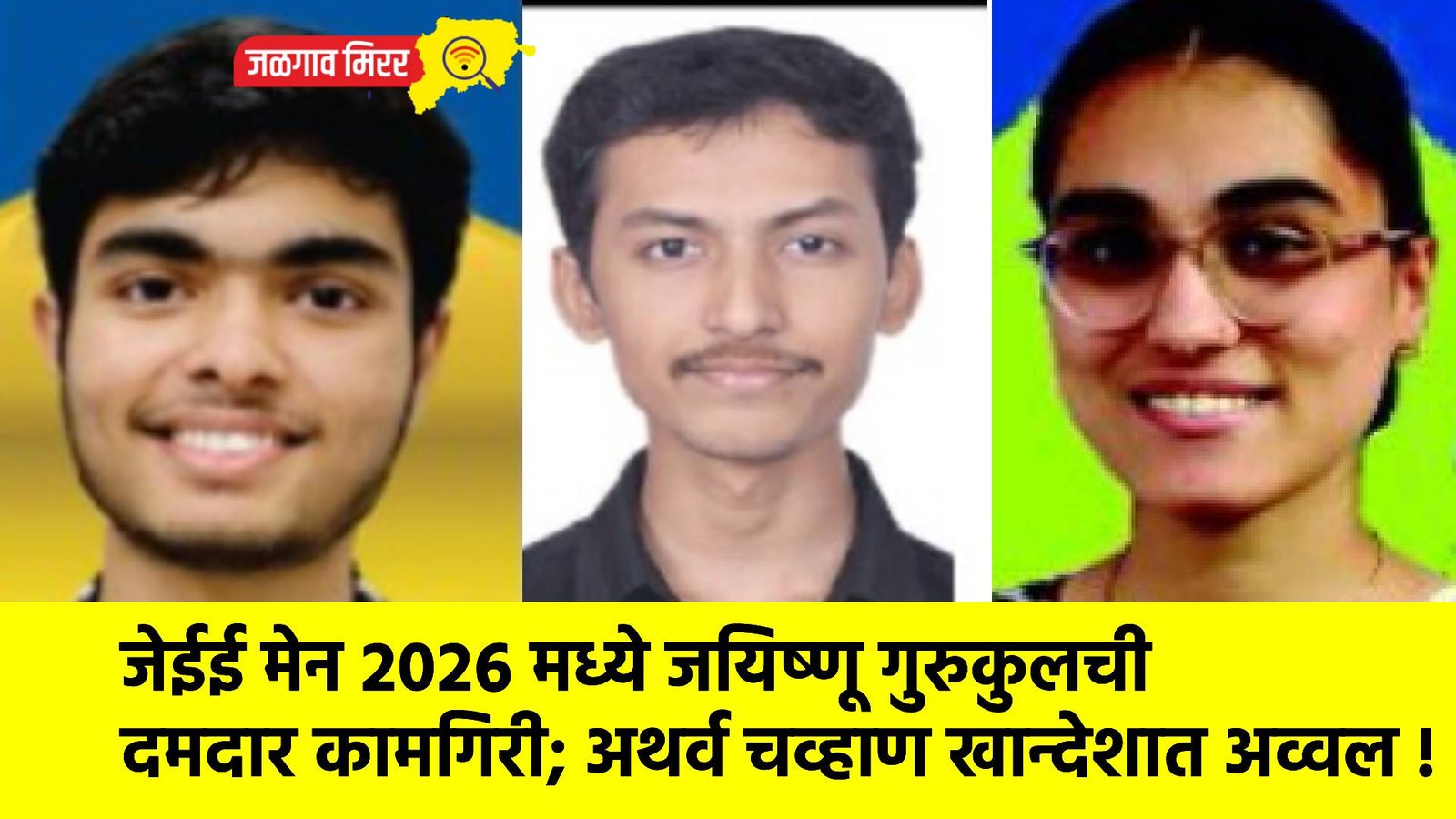 जळगाव, भुसावळ व फैजपूर येथे कार्यरत JAISHNU IIT / Medical Gurukul (PACE IIT MEDICAL) या संस्थेने JEE Main 2026 परीक्षेत उल्लेखनीय यश संपादन करत उत्कृष्ट निकालाची परंपरा कायम राखली आहे. संस्थेतील विद्यार्थी अथर्व चव्हाण याने 99.86 टक्के गुण (percentile) मिळवत खान्देश विभागात अव्वल स्थान पटकावले. त्याने Physics मध्ये 99.88, Mathematics मध्ये 99.68 तर Chemistry मध्ये 99.54 percentile मिळवत सर्वांगीण उत्कृष्ट कामगिरी केली. त्याला All India Rank 2297 प्राप्त झाला आहे. याशिवाय इतर विद्यार्थ्यांनीही उत्तम यश मिळवले असून त्यामध्ये सारंग वाणी (98.26 %tile), आयुषी पाटील (97.42 %tile), भक्ती मकवाना (96.15 %tile), विधी नेहेते (94.28 %tile), चिन्मयी पवार (93.82 %tile), अनिकेत सिंग (93.07 %tile), प्रांजल चौधरी (91.92 %tile) व श्रीनंद बाविस्कर (91.09 %tile) यांचा समावेश आहे.