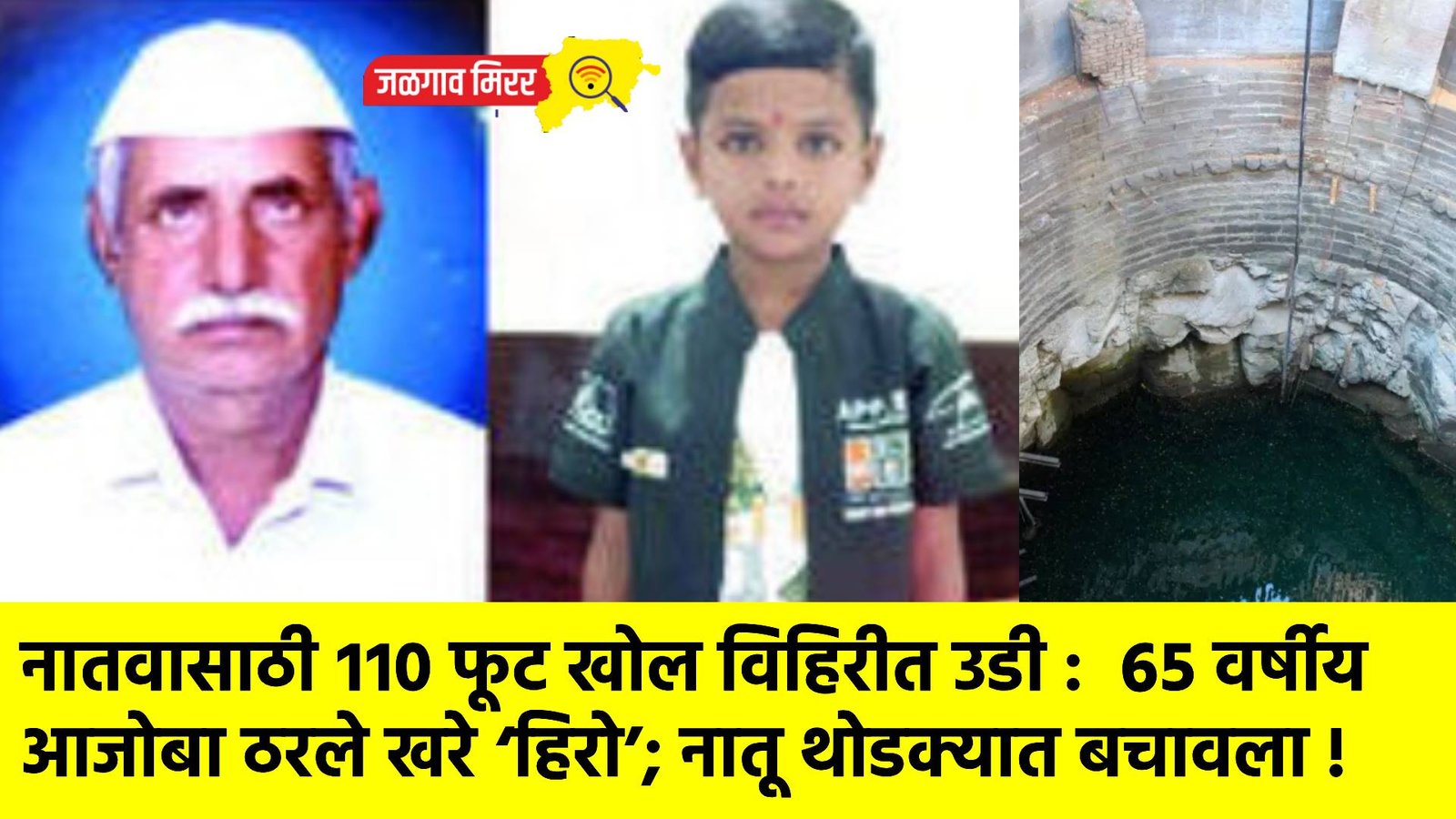 स्थानिक नागरिकांकडून मिळालेल्या माहितीनुसार, आत्माराम बाविस्कर यांचे देशमुखवाडी शिवारात शेत आहे. शनिवारी ते आपला नातू श्रावण बाविस्कर (वय ८) याच्यासह गायींना पाहण्यासाठी शेतात गेले होते. शेतातील गायींना पाणी पाजण्याच्या कामात आत्माराम बाविस्कर व्यस्त असताना श्रावण खेळत होता. दरम्यान, त्याचा तोल जाऊन तो शेजारीच असलेल्या विहिरीत पडला. अचानक पाण्यात पडल्याचा आवाज ऐकून आजोबांनी विहिरीकडे धाव घेतली. आत डोकावून पाहिले असता नातू पाण्यात हातपाय मारत असल्याचे दिसले. त्यानंतर क्षणाचाही विलंब न करता आत्माराम बाविस्कर यांनी ११० फूट खोल विहिरीत उडी घेतली. विहिरीत जवळपास ७० फूट पाणी होते.