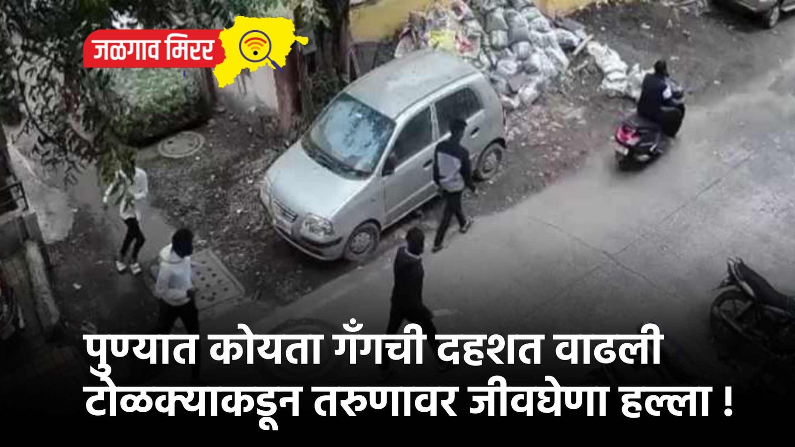 पोलिसांनी दिलेल्या माहितीनुसार, पुण्यातील दत्तवाडी परिसरातील एका रस्त्यावर भररस्त्यात सात ते आठ जणांचे टोळके एका तरुणाच्या मागे कोयता आणि इतर धारदार हत्यारे घेऊन धावत होते. टोळक्यापासून वाचण्यासाठी तरुणाने जीवाच्या आकांताने धावत होता. मात्र, रस्त्यावर त्याचा तोला गेला आणि खाली कोसळला. इतक्यात त्याच्या पाठीमागून हातात कोयता घेऊन आलेल्या एकाने त्याच्यावर वार केला. त्यानंतर इतरांनीही त्या तरुणावर कोयत्याने हल्ला केला. ही संपूर्ण घटना त्या ठिकाणी असणाऱ्या सीसीटीव्हीमध्ये कैद झाली आहे.