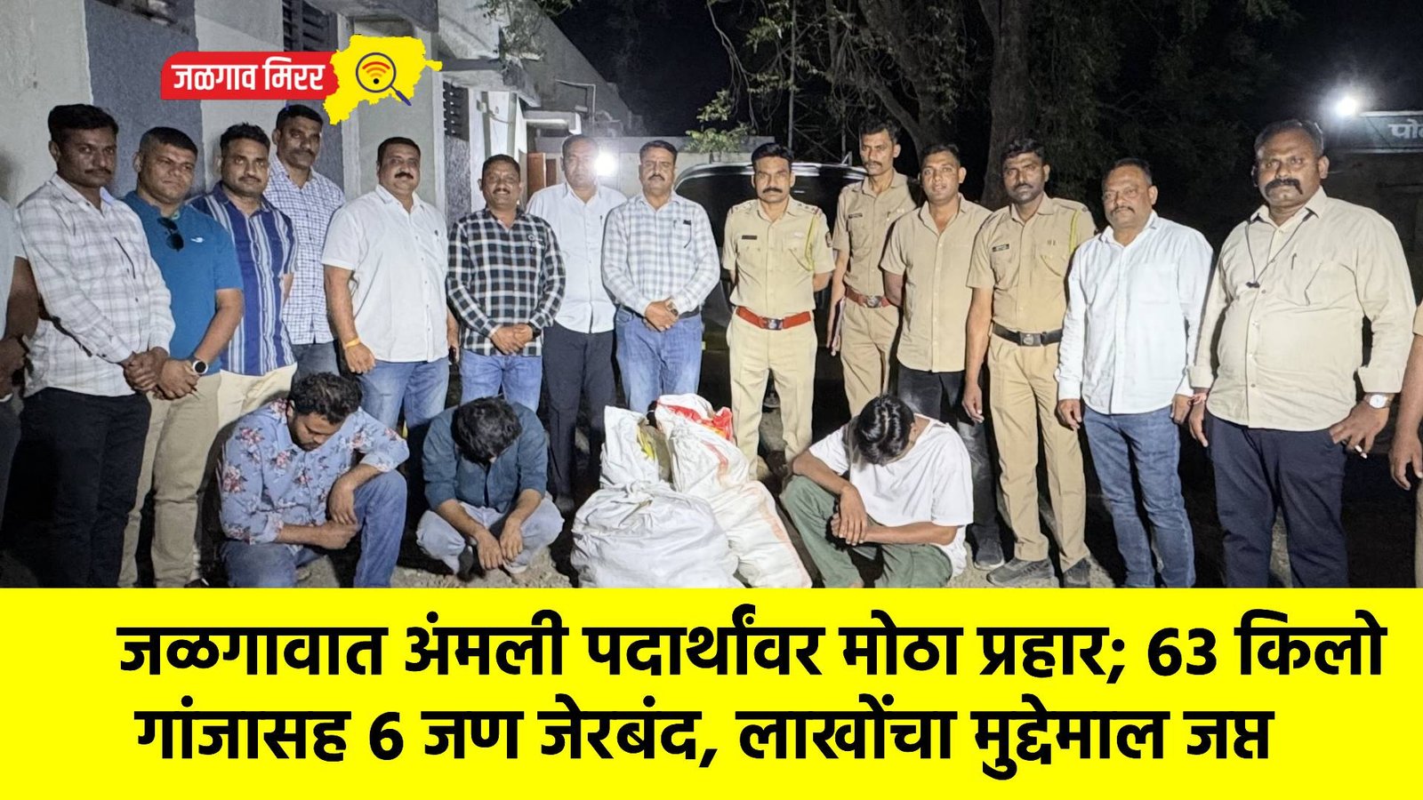 जिल्ह्यात अंमली पदार्थांच्या तस्करीविरोधात पोलिसांनी मोठी मोहीम उघडली आहे. स्थानिक गुन्हे शाखा आणि पहूर पोलिसांनी संयुक्त कारवाई करत तब्बल ६३ किलो ७१० ग्रॅम गांजासह दोन अलिशान कार आणि ६ आरोपींना अटक केली आहे. जप्त करण्यात आलेल्या एकूण मुद्देमालाची किंमत २२ लाख ७४ हजार २०० रुपये इतकी आहे. याप्रकरणी ६ जणांविरोधात पहूर पोलीस ठाण्यात गुन्हा दाखल करण्यात आला आहे.