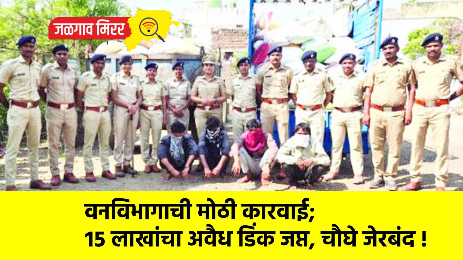 वनविभागाच्या पथकाने कक्ष क्रमांक ३२ मध्ये छापा टाकून आरोपी गणदास गबू डुडवे (वय ३८), अमित सुजाण मोरे (वय २१), सावन रणजित मोरे (वय २४, सर्व रा. मेंढागड, जि. खरगोन) तसेच हेमराज होरपाल चव्हाण (वय २२, रा. मांडवखेडा, जि. खरगोन) यांना ताब्यात घेतले. त्यांच्याकडून सुरुवातीला ११० किलो धावडा डिंक जप्त करण्यात आला.