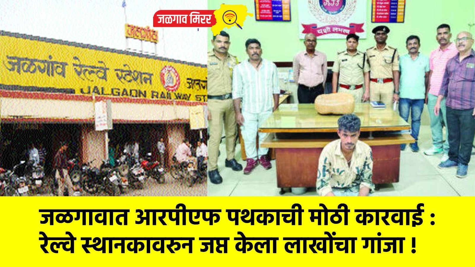 रेल्वे सुरक्षा बलाच्या (आरपीएफ) च्या पथकाने ऑपरेशन नार्कोस अंतर्गत मोठी कारवाई केली. यामध्ये त्यांनी जळगाव रेल्वे स्थानकावरुन १ लाख २३ हजार रुपये किमतीचा ८ किलो २०० ग्रॅम गांजा जप्त केला. याप्रकरणी दोन जणांविरुद्ध गुन्हा दाखल करुन त्यांना अटक करण्यात आली आहे. त्यांना भुसावळ रेल्वे सुरक्षा बलाच्या ताब्यात देण्यात आले आहे.