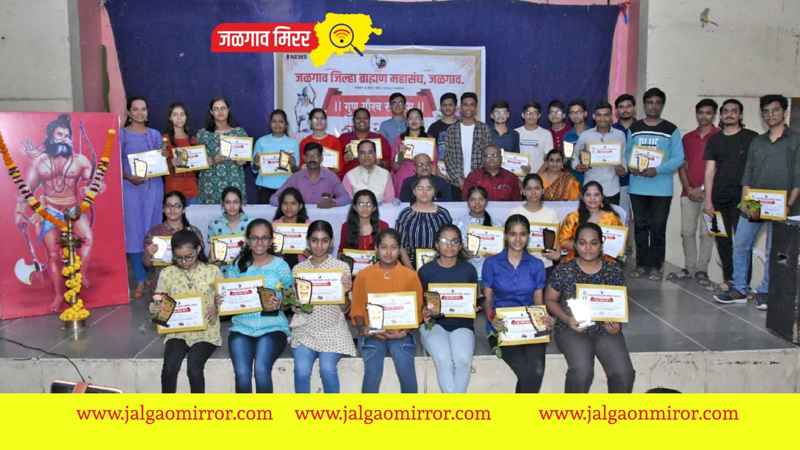 येथील जळगाव जिल्हा ब्राह्मण महासंघातर्फे शहरातील १० वी १२ वी च्या परीक्षेतील ८० गुणवंत विद्यार्थ्यांचा रोख रक्कम, स्मृतिचिन्ह व प्रशस्तीपत्र देऊन सत्कार करण्यात आला.