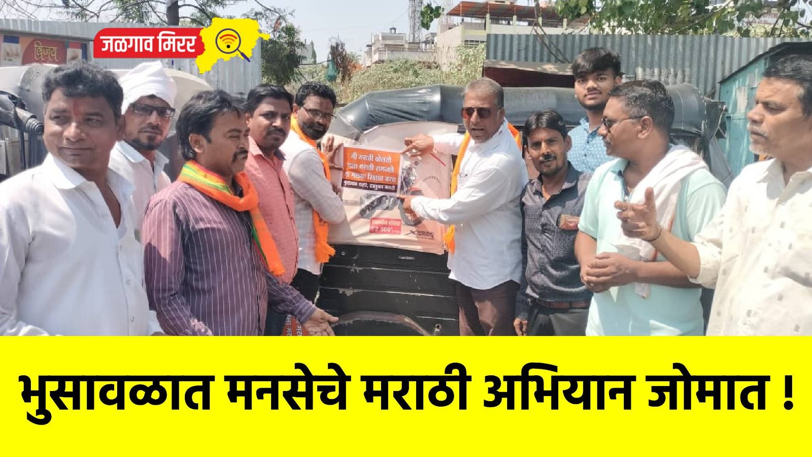 या पार्श्वभूमीवर महाराष्ट्र नवनिर्माण सेनेने भुसावळमध्ये पुढाकार घेत जनजागृतीचा हा उपक्रम हाती घेतला. शहरातील विविध भागांत मनसे पदाधिकाऱ्यांनी चालकांशी संवाद साधत मराठी भाषेचा वापर वाढविण्याचे आवाहन केले.