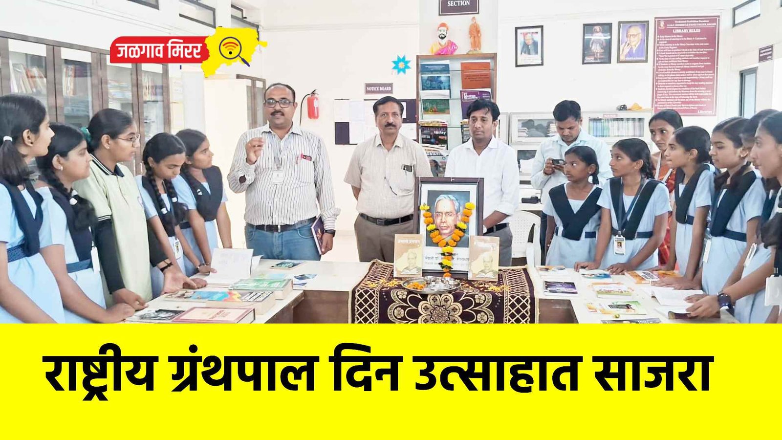 डॉ.एस.आर रंगनाथन यांची जयंती व राष्ट्रीय ग्रंथपाल दिनानिमित विवेकानंद प्रतिष्ठान प्राथमिक व उच्च प्राथमिक शाळा वाघ नगर येथील ग्रंथालयात ‘ग्रंथ प्रदर्शन’ भरविण्यात आले. या प्रसंगी मुख्याध्यापक श्री. हेमराज पाटील, समन्वयक श्री. सचिन गायकवाड, ग्रंथपाल डॉ. हितेश ब्रिजवासी यांची प्रमुख उपस्थिती लाभली.
