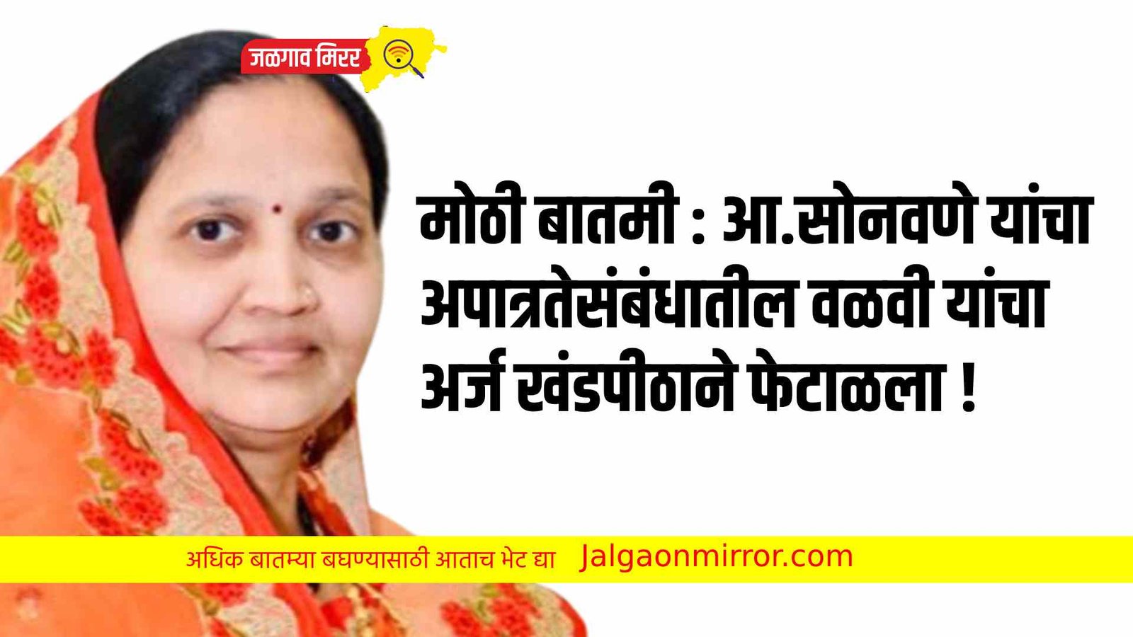 जिल्ह्यातील चोपडा तालुक्याच्या आ. लता सोनवणे यांचे विरोधातील अपात्रतेसंबंधातील जगदिश वळवी यांचा अर्ज खंडपीठाने फेटाळला आहे. जिल्ह्यातील चोपड़ा विधानसभा मतदारसंघाच्या आमदार सौ. लता चंद्रकात सोनवणे यांचे जात प्रमाणपत्र समितीने फेटाळलेले आहे. समितीचा निर्णय उच्च न्यायालयाने कायम केल्यानंतर लता चंद्रकांत सोनवणे यांची याचिका सर्वोच्च न्यायालयाने फेटाळली आहे. त्यावर जगदिशचंद्र वळवी यांनी ना. सर्वोच्च न्यायालयात एसएलपी दाखल करून अपात्र घोषित करणेबाबत विनंती केली होती. परंतु सदरची एसएलपी मागे घेवून जगदिशचंद वळवी यांनी उच्च न्यायालयात रिट पिटीशन नं. १२३३६ / २०२२ दाखल केली होती. त्यात आ. लताबाई सोनवणे यांना पार्टी न करता महाराष्ट्र शासन, प्रधान सचिव, अध्यक्ष विधानसभा राज्यपाल महाराष्ट्र राज्य, उपसंचालक आदिवासी विभाग, निवडणूक आयोग दिल्ली, राज्य निवडणूक आयोग व म्युनसिपल कमिशनर म.न.पा. जळगाव यांना प्रतिवादी करून आमदार लताबाई सोनवणे यांना अपात्र घोषीत करणेबाबत याचिका अँड. बोलकर यांचेमार्फत दाखल केली होती. त्यात आमदार लताबाई सोनवणे ह्या सामील पार्टी नसल्याने अॅड. महेश देशमुख व अॅड. वसंत भोलाणकर यांचेमार्फत स्वत: हजर होवून हरकत अर्ज सिव्हील अॅप्लीकेशन नं. १६७२२/२०२२ हा दाखल केला होता. आज जळगावात झालेल्या पत्रकार परिषदेत आ.सोनवणे यांनी हि माहिती दिली.