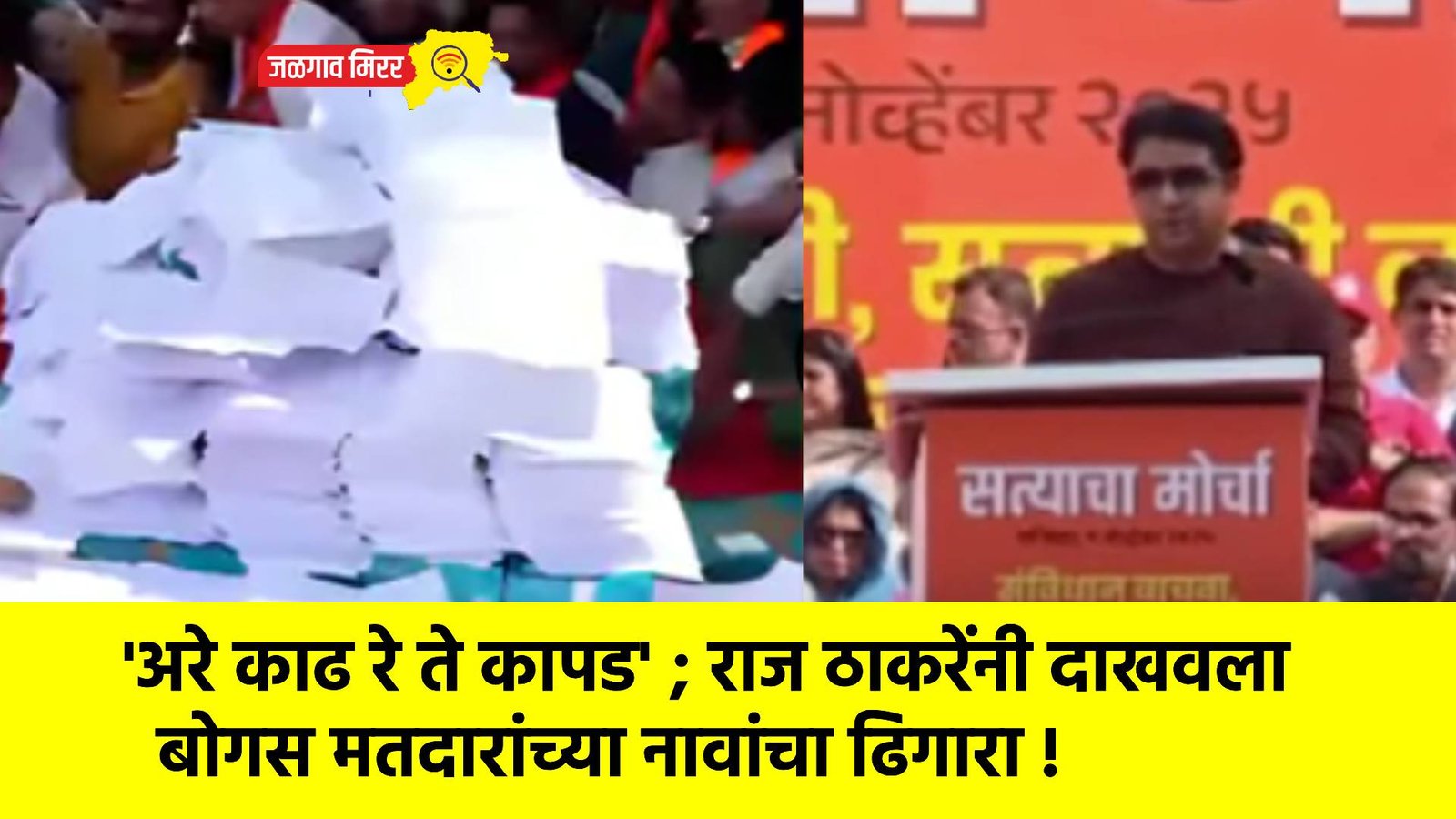 यावेळी त्यांनी या बोगस मतदारांचा पुरावा देण्यासाठी मतदार याद्यांच्या ढिगाचा पुरावाही दाखवला. ते ‘अरे काढ रे ते कापड’ म्हणताच, तिथे दुबार मतदारांच्या नावांच्या कागदपत्रांचा ढिगारा दिसला. हे सर्व दुबार मतदार आहेत, असे राज ठाकरे म्हणाले. ते बोगस मतदार याद्यांच्या ढिगाऱ्याकडे बोट दाखवत म्हणाले, हे एवढे सगळे दुबार मतदार आहेत. हे फक्त मी सांगितलेल्या मतदार संघातील दुबार मतदार आहेत. यावरून महाराष्ट्रात कोणत्या प्रकारचा गोंधळ सुरू आहे दिसून येईल.