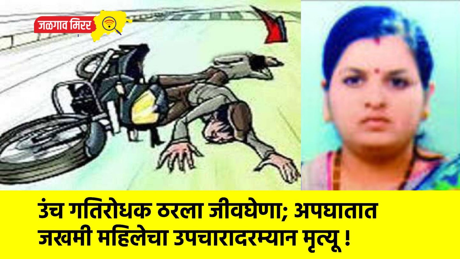 मिळालेल्या माहितीनुसार, तालुक्यातील मुडी-मांडळ येथील गायत्री प्रशांत सूर्यवंशी (वय ४५) असे मृत महिलेचे नाव आहे. मिळालेल्या माहितीनुसार, २८ मार्च रोजी सायंकाळी साडेसात वाजेच्या सुमारास त्या पती डॉ. प्रशांत सूर्यवंशी यांच्यासह दुचाकीने मुडीहून अमळनेरकडे जात होत्या. दाजीबा नगर परिसरातील गलवाडे रस्त्यावर नव्याने उभारण्यात आलेल्या गतिरोधकाची उंची जास्त असल्याने त्यांच्या दुचाकीने अचानक त्यावर धडक दिली.