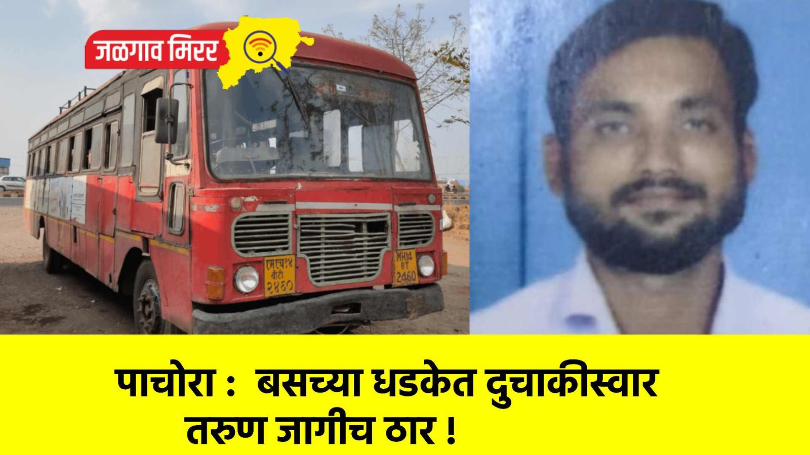 सविस्तर वृत्त असे कि, असलम शहा सलीम शहा (वय ३६, रा. रोहीण खेडा, बुलढाणा ह. मु. मुस्लिम मोहल्ला, किनगाव ता. यावल) हे १८ मे रोजी पाचोऱ्याहुन जळगावच्या दिशेने मोटरसायकलने जात असताना पाचोरा तालुक्यातील बिल्दी फाट्याजवळ जळगावकडुन पाचोऱ्याच्या दिशेने येणाऱ्या बसने असलम शहा यांच्या मोटरसायकलला धडक दिली.