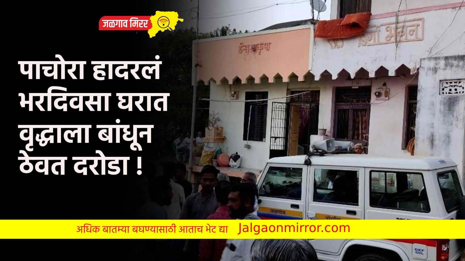 सविस्तर वृत्त असे की, पाचोरा शहरापासून जवळ असलेल्या दुसखेडा गावी रविंद्र एकनाथ पाटील यांचे ८७ वर्षाचे वडील एकनाथ पांडू पाटील हे ऐकटे घरी असतांना दुपारी एक वाजेच्या दरम्यान ३० ते ३५ वर्षाचा पुरुष तोंडाला रुमाल, चष्मा, हातात हात मोजे परिधान केलेल्या अवस्थेत घरात घुसला व घरातील एकट्या असलेल्या ८७ वर्षाच्या एकनाथ पाटील याना चाकुचा धाक दाखवून मागच्या खोलीत नेले. व त्याठिकाणी एकनाथ पाटील यांच्या तोंडाला रुमाल बांधत हात, पाय देखील बांधत जीवे मारण्याची धमकी देऊन पलंगावर धकलुन दिले. दरम्यान कपाटातील सुमारे ५ लाख रुपये रोख व ३ तोळे सोने घेऊन अज्ञात चोरटा पसार झाला. सद्यस्थितीत शेतीचे कामे सुरू असल्याने रविंद्र पाटील व त्याचा मुलगा शेतात गेला होता तर त्याची पत्नी व सुन गावात पापड लाटण्यासाठी गेली असतांना दुपारी एक वाजता घरी कुणी नसल्याचा फायदा घेत अज्ञात व्यक्तीने भरदिवसा दरोडा टाकला.