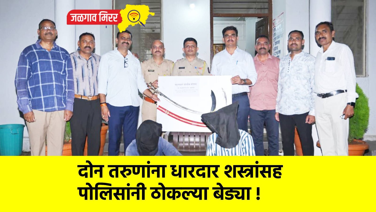 चाळीसगाव तालुक्यातील उंबरखेड येथील दोन तरुणांना बेकायदेशीरपणे धारदार शस्त्रे बाळगल्याप्रकरणी मेहुणबारे पोलिसांनी अटक केली आहे.