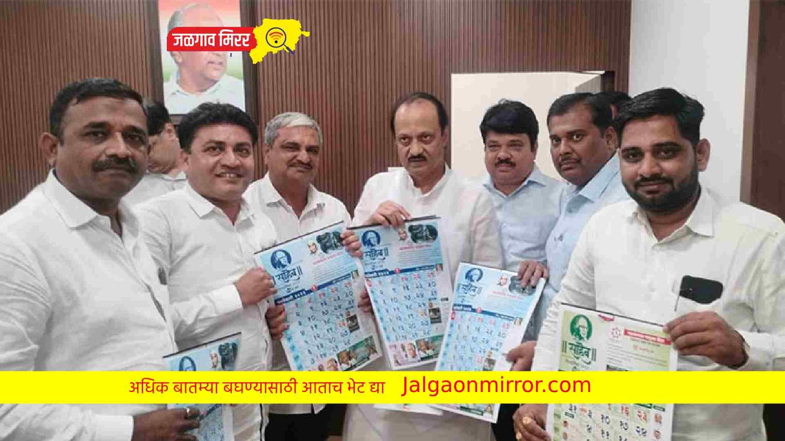 राष्ट्रवादी काँग्रेसचे अध्यक्ष खा. शरद पवार यांचे वाढदिवसचे निमित्ताने येथील राष्ट्रवादी काँग्रेस पक्षाचे जिल्हा कार्यालयीन सचिव संजय चव्हाण यांनी निर्मित केलेल्या ‘साहेब’ या सन २०२३च्या दिनदर्शिकेचे प्रकाशन विधानसभेचे विरोधी पक्षनेते ना. अजितदादा पवार यांचे हस्ते आज मुंबईत पार पडले. यावेळी संजय चव्हाण, राजेश पाटील, दिलीप चव्हाण, रमेश पाटील, हेमंत पाटील उमेश पाटील आदी उपस्थित होते.