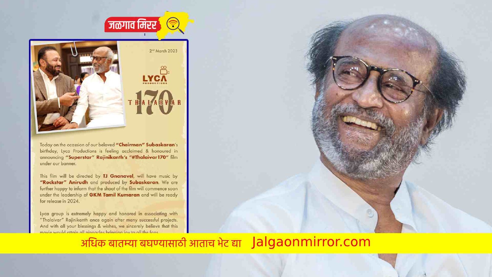 🪙 @LycaProductions #Subaskaran#தலைவர்170 🤗 pic.twitter.com/DYg3aSeAi5— Lyca Productions (@LycaProductions) March 2, 2023
