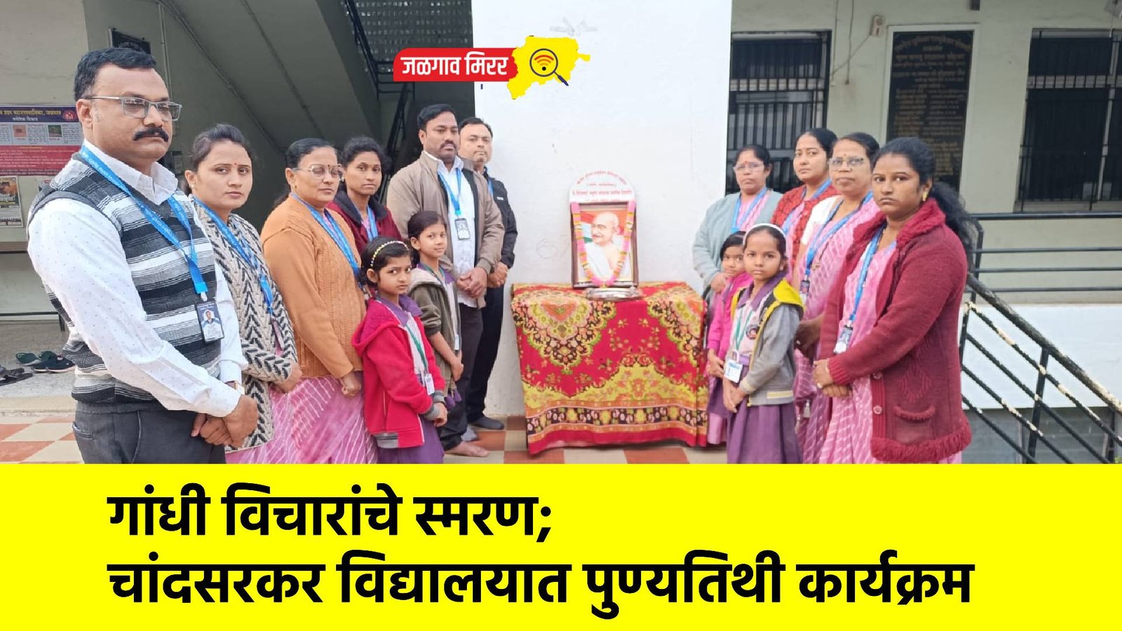 राष्ट्रपिता महात्मा गांधी यांची पुण्यतिथी खान्देश युनियन एज्युकेशन सोसायटी संचलित कै. गि. न. चांदसरकर पूर्व प्राथमिक व प्राथमिक विद्यामंदिर, साने गुरुजी कॉलनी, जळगाव येथे दिनांक 30 जानेवारी 2026 रोजी श्रद्धापूर्वक साजरी करण्यात आली.