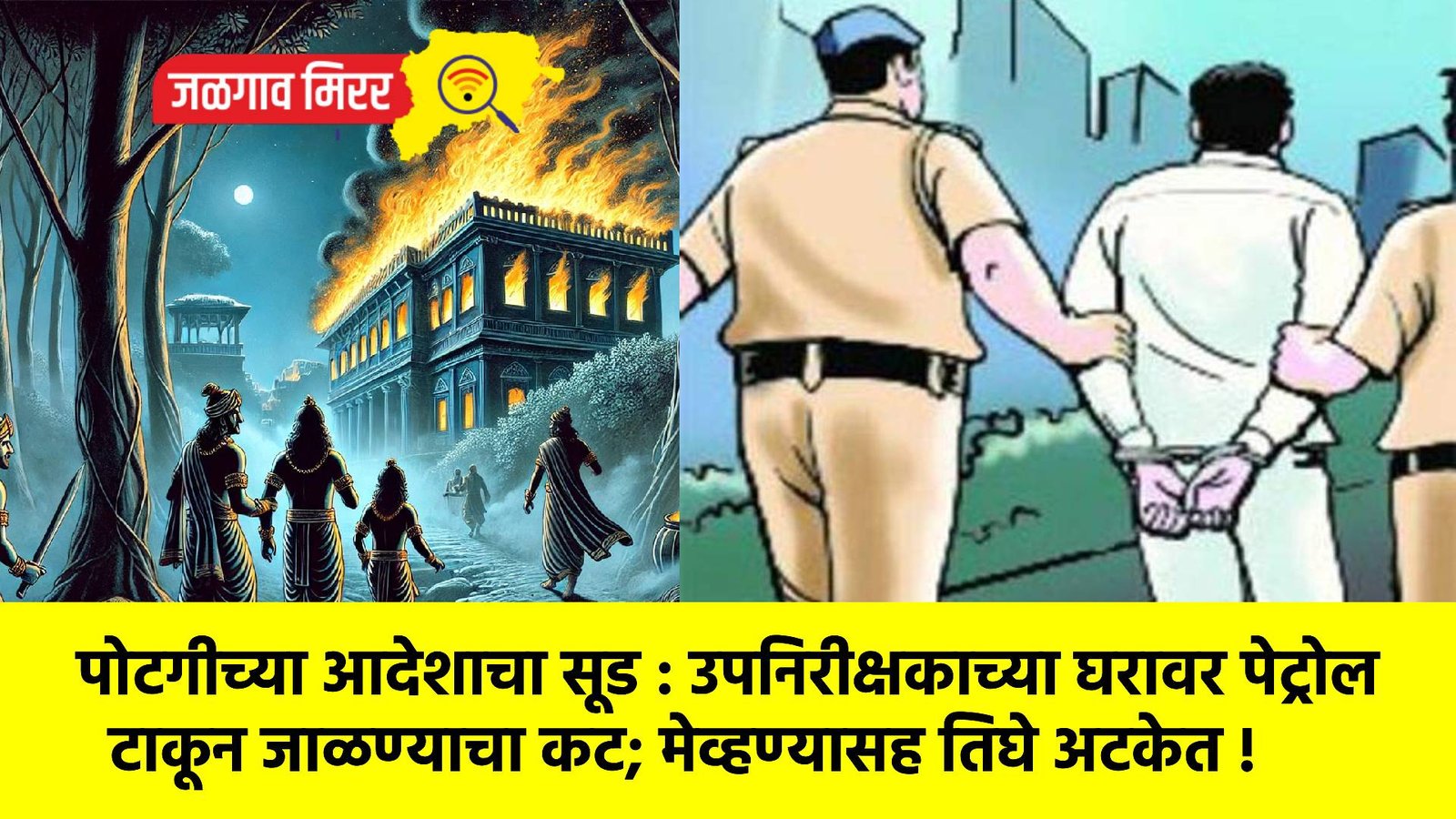 मुंबई येथे कार्यरत असलेले उपनिरीक्षक पाचोरा तालुक्यातील नगरदेवळा येथे आई व बहिणीसह वास्तव्यास आहेत. काही दिवसांपूर्वी मध्यरात्री त्यांच्या घरावर दुचाकीवरून आलेल्या दोघांनी तोंडाला रुमाल बांधून पेट्रोल टाकत आग लावण्याचा प्रयत्न केला होता. त्यावेळी घरात आई व बहिण झोपलेल्या होत्या. सुदैवाने मोठी दुर्घटना टळली; मात्र या घटनेमुळे परिसरात भीतीचे वातावरण निर्माण झाले होते.