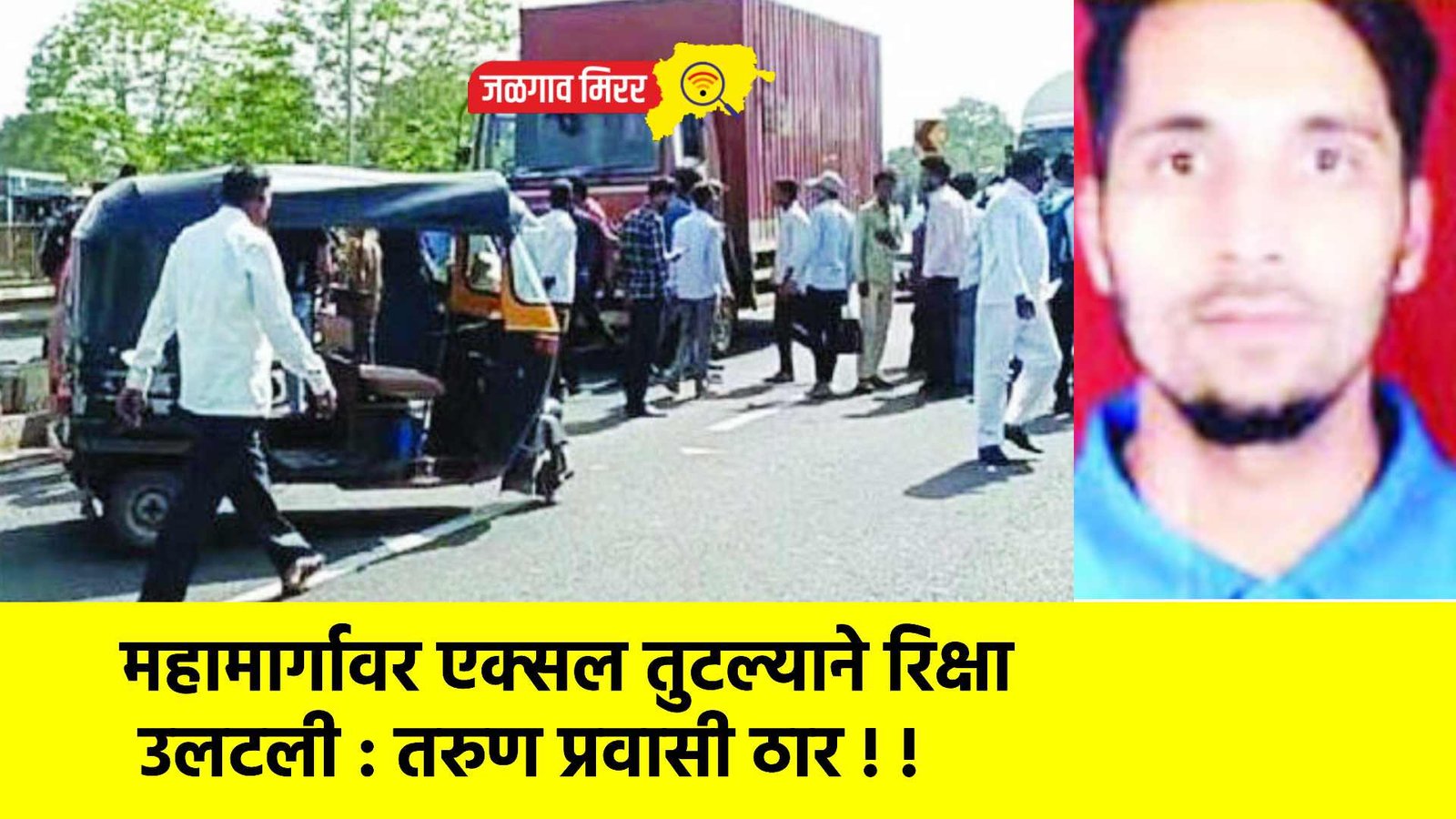 सविस्तर वृत्त असे कि, भुसावळ येथील शिवाजी नगरात राहणारे वसीम खान ईस्माईल खान हे एमआयडीसीतील एका कंपनीत नोकरीस होते. दररोज ते भुसावळ येथून जळगावला येत होते. बुधवारी नेहमीप्रमाणे सकाळी वसीम हे भुसावळ येथून जळगाव जाण्यासाठी एका रिक्षात बसले. भुसावळकडून जळगावच्या दिशेने प्रवासी घेऊन येणारी हि ऑटो रिक्षा (क्रमांक एमएच.१९. बीजे ५४३१) नशिराबाद शहराकडे जाणाऱ्या समांतर रस्त्यावर आली असता अचानक रिक्षाचे पुढील चाकाचे एक्सेल तुटल्यामुळे चालकाचे नियंत्रण सुटल्याने सुटून रिक्षा उलटली. रिक्षा उलटून झालेल्या अपघातात वसीम खान यांच्या डोक्याला गंभीर दुखापत होवून ते जखमी झाले. त्यांना शासकीय वैद्यकीय महाविद्यालय व रुग्णालयात उपचारासाठी दाखल करण्यात आले. तर इतर २ प्रवासी जखमी झाल्यामुळे त्यांना नशिराबाद येथील प्राथमिक आरोग्य केंद्रात दाखल केले होत. वसीम खान यांच्या डोक्याला गंभीर दुखापत झाल्यामुळे त्यांच्यावर अतिदक्षता विभागात उपचार सुरु असताना सायंकाळच्या सुमारास त्यांचा दुर्देवी मृत्यू झाला. यावेळी कुटुंबीयांनी मन हेलावणारा आक्रोश केला. याप्रकरणी पोलिसात अकस्मात मृत्यूची नोंद करण्यात आली आहे. त्यांच्या पश्चात आई, वडील, पत्नी, २ मुले, २ भाऊ असा परिवार आहे.