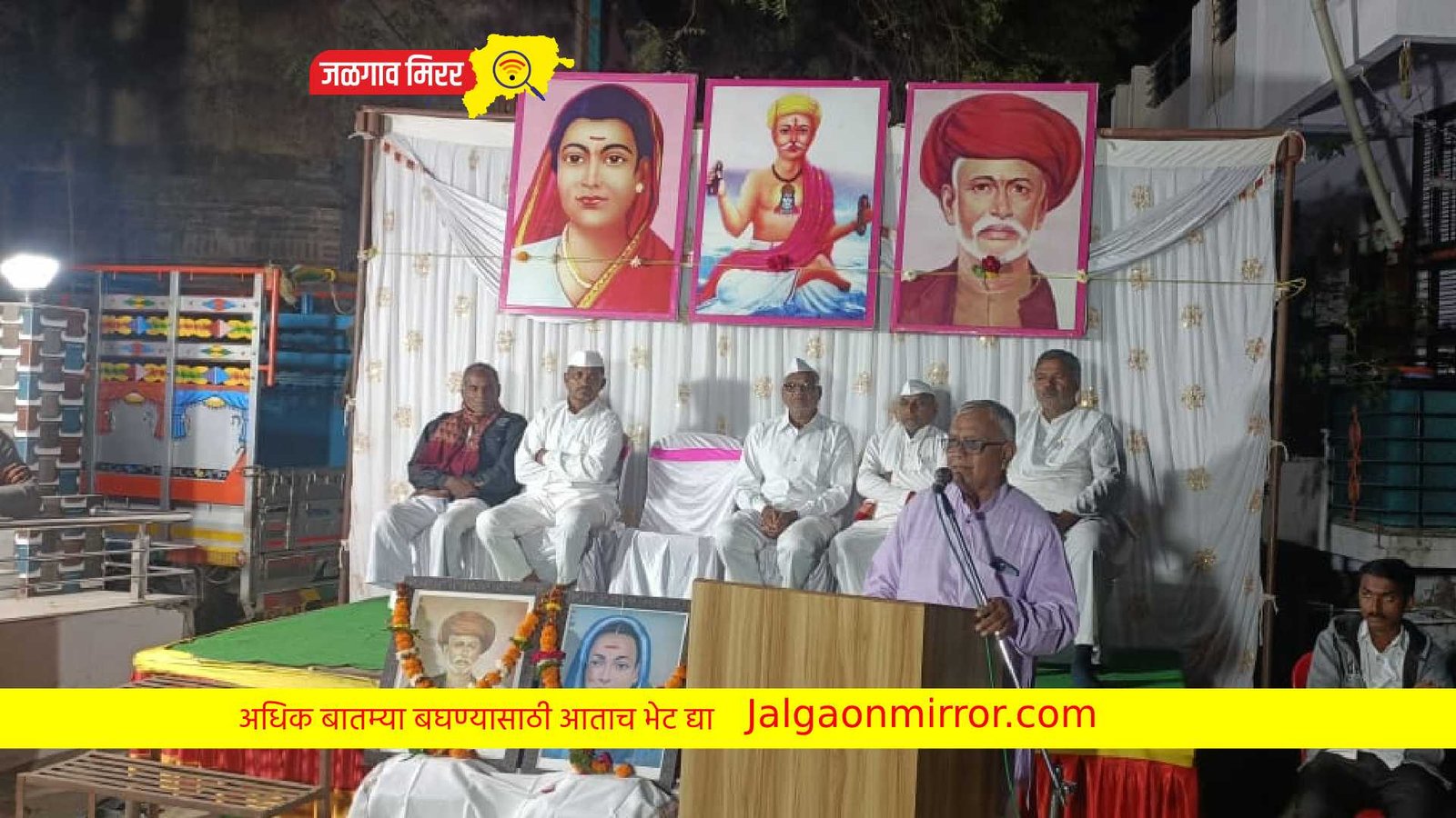 व्यासपीठावर मोठा माळीवाडा पंचमंडळ अध्यक्ष विठोबा माळी, लहान माळीवाडा पंचमंडळ अध्यक्ष रामकृष्ण महाजन त्याचप्रमाणे उपाध्यक्ष निंबाजी महाजन व शिवाजी देशमुख उपस्थित होते. व्याख्यान कार्यक्रमाप्रसंगी शहरातील समाजात काम करणारे गायरान मंचाच्या सदस्यांच्या सत्कार करण्यात आला. मा. नगराध्यक्षा पुष्पा महाजन, नगरसेविका सुरेखा महाजन, प्रा. कविता महाजन, संगीता माळी व स्थानिक महिलांच्या हस्ते प्रतिमा पूजन करून कार्यक्रमाची सुरुवात करण्यात आली. कार्यक्रमाचे सूत्रसंचालन व प्रस्तावना समाजाचे कोषाध्यक्ष व्ही. टी. माळी यांनी केले. आभार समाजाचे सचिव गोपाल माळी यांनी मानले. कार्यक्रम यशस्वी करण्यासाठी समाजाचे ट्रस्टी ज्ञानेश्वर महाजन.डिगंबर महाजन. व्ही. टी. माळी, गोपाळ माळी, विजय महाजन, संजय महाजन, आर. डी. महाजन, सुकदेव महाजन. दशरथ महाजन, राजू महाजन, रामनाथ महाजन, मनोज महाजन व सर्व पंचमंडळाने मेहनत घेतली.
