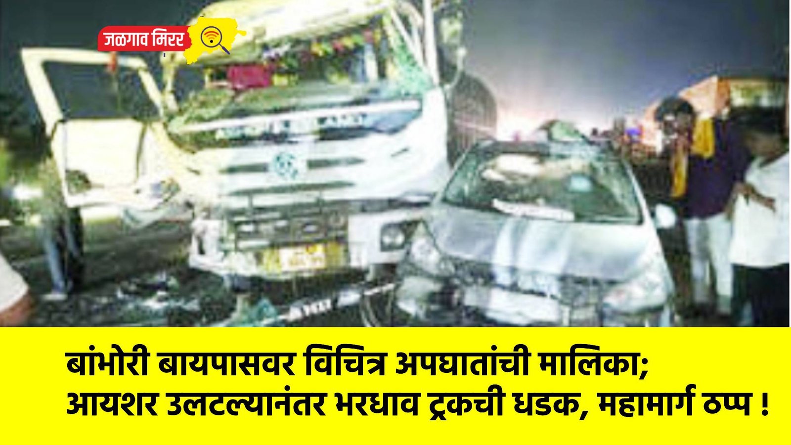 बांभोरी बायपासवर विचित्र अपघातांची मालिका; आयशर उलटल्यानंतर भरधाव ट्रकची धडक, महामार्ग ठप्प !