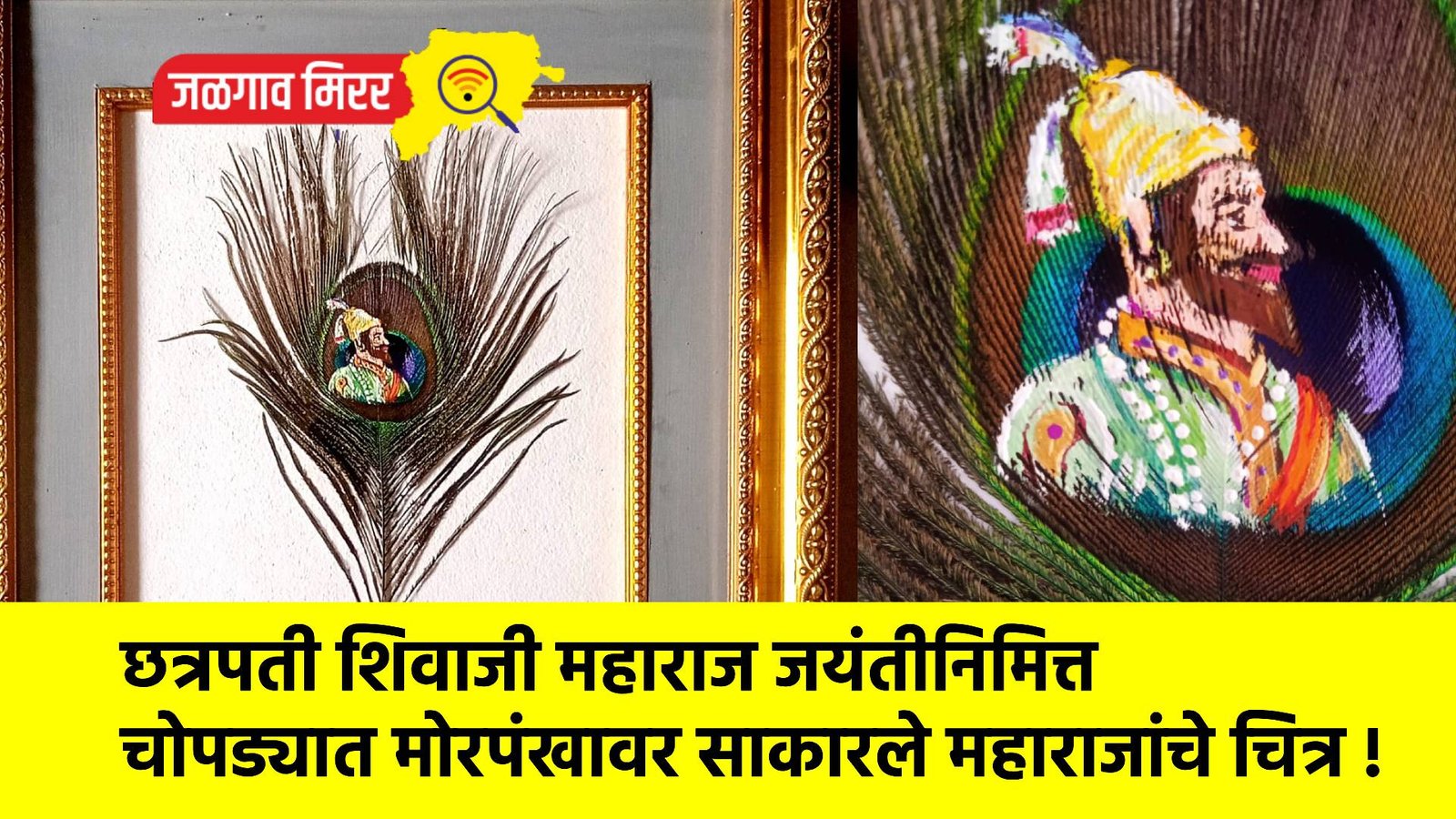 छत्रपती शिवाजी महाराज जयंतीनिमित्त चोपड्यात मोरपंखावर साकारले महाराजांचे चित्र !
