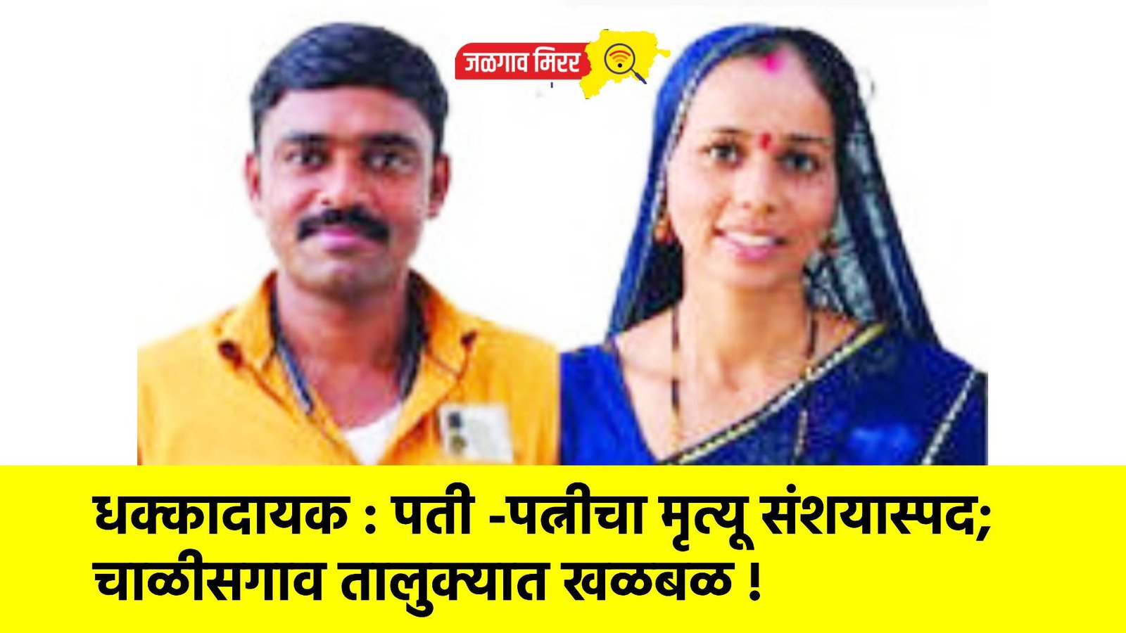 मिळाळले माहितीनुसार, भगवान पोपट जाधव (वय ३८) आणि त्यांची पत्नी आशाबाई भगवान जाधव (वय २७, रा. शिवापुर तांडा, ता. चाळीसगाव) अशी मृतांची नावे आहेत. दोघांना मृत अवस्थेत चाळीसगाव ग्रामीण रुग्णालयात दाखल करण्यात आले. ही घटना २८ मार्च रोजी सकाळी सुमारे ९.४५ वाजण्यापूर्वी घडल्याचे प्राथमिक तपासातून समोर आले आहे.