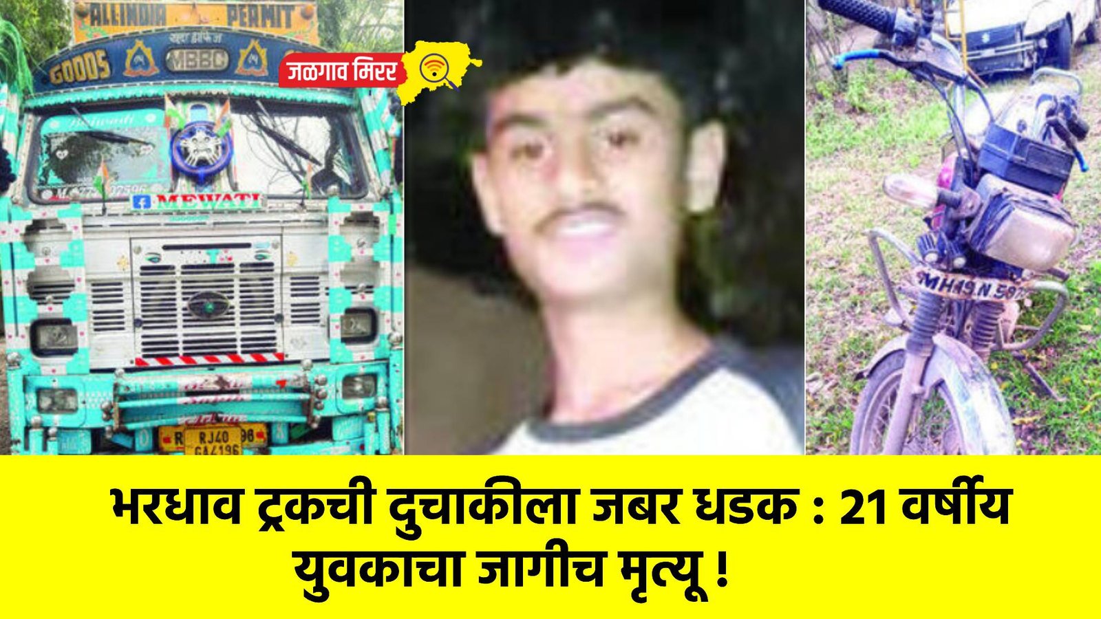 सविस्तर वृत्त असे कि, अडावद येथील पोलीस स्टेशन समोरील वडगाव रस्त्यावर आज दि. ३० रोजी दुपारी ३ वाजेच्या सुमारास चंदसनी, कमळगाव, वडगाव येथील शेतातून टरबूज भरून अडावद कडे येत असलेल्या मालट्रक क्रमांक आर. जे.४० जी. ऐ.४१९६ या वरील चालकाने आपल्या ताब्यातील वाहन रस्त्याची परिस्थिती न पाहता चालविल्याने समोरून येणाऱ्या बजाज कंपनीच्या मोटारसायकल क्रमांक एम. एच. १९ एन. ५९७९ हिस जोरदार धडक दिल्याने मोटरसायकली वरील तरुण आकाश ज्ञानेश्वर पाटील रा. इंदिरानगर प्लॉट ह्या जागीच गतप्राण झाला. अपघातानंतर ट्रक चालक वाहन सोडून पसार झाला आहे.