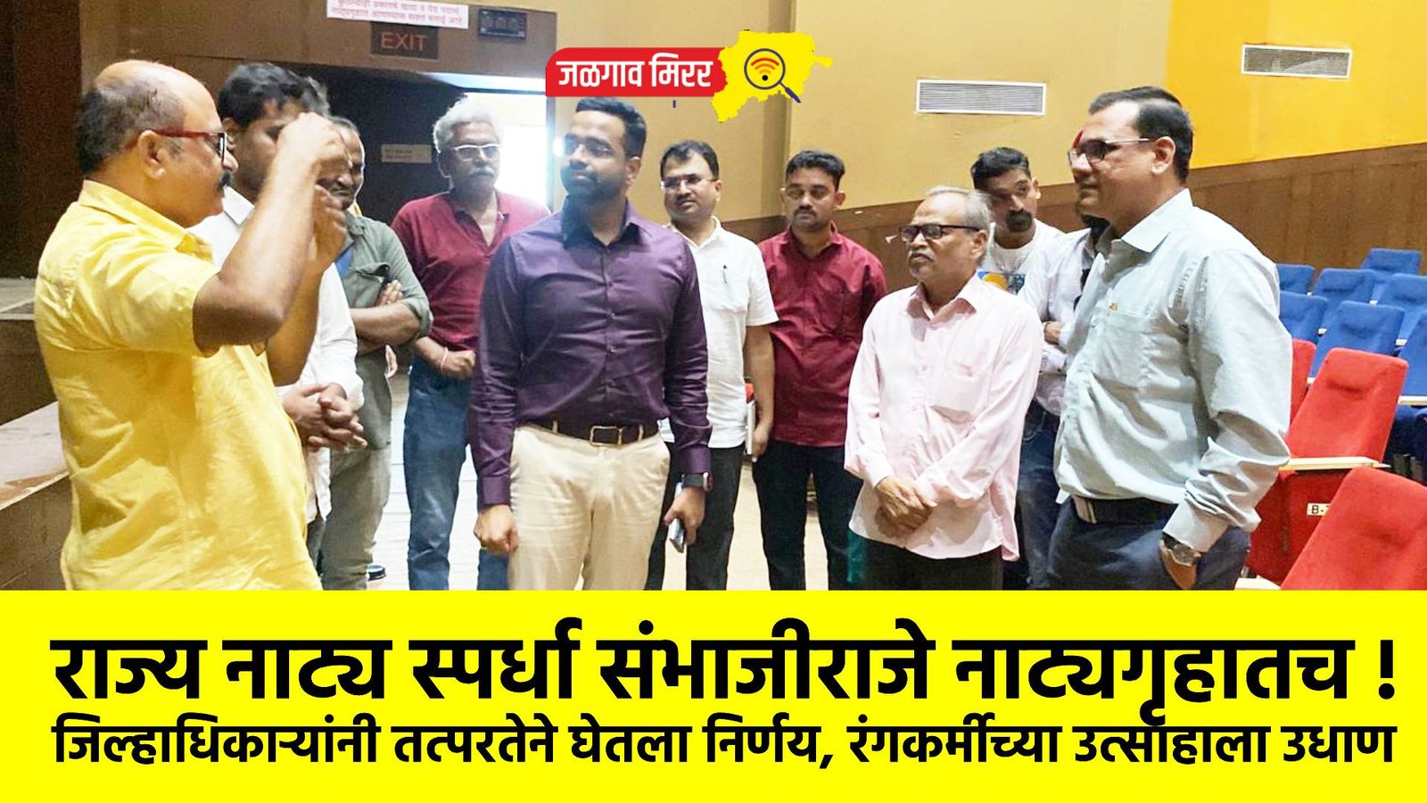 छत्रपती संभाजीराजे नाट्यगृहाचा मक्ता हा एका खासगी संस्थेकडे होता. मात्र, काही तांत्रिक अडचणींमुळे त्यांनी हा मक्ता सोडल्याने नाट्यगृह ओस पडले होते. दरम्यान, नाट्यगृहाची कोणतीही टेंडर प्रक्रिया निघाली नसल्याने स्थानिक रंगकर्मींची हक्काची मराठी हौशी राज्य नाट्य स्पर्धा होणार कुठे, असा प्रश्न उपस्थित झाला होता. यावेळी शहरातील रंगकर्मींनी एकत्र येत जिल्हाधिकार्यांकडे पाठपुरावा केला. दरम्यान, यावेळी जिल्हाधिकार्यांनी नाट्यगृहाला भेट देत रंगकर्मींच्या सर्व अडी-अडचणी ऐकून घेत यावर लवकरात लवकर तोडगा काढून मराठी हौशी स्पर्धा ही 15 नोव्हेंबरला नाट्यगृहात होणार असल्याचे सांगितले. यावेळी त्यांनी दिलेल्या सूचना आणि निर्माण होणार्या समस्या या समस्त रंगकर्मीनी ऐकून घेत त्यावर तोडगा कसा काढला जाईल, यावर चर्चा विनिमय करण्यात आले. यावेळी बांधकाम विभागाचे कार्यकारी अभियंता आर.डी.पाटील, कनिष्ठ अभियंता मुकेश सोनवणे, ज्येष्ठ रंगकर्मी नाट्यकर्मी चिंतामण पाटील, रमेश भोळे, शंभू पाटील, अनिल मोरे, डॉ.वैभव मावळे, गौरव लवंगले, विशाल जाधव, हर्षल पाटील, अमोल ठाकूर, आकाश बाविस्कर, नाट्यगृहाचे तांत्रिक सहाय्यक विजू पाटील आदी उपस्थित होते.