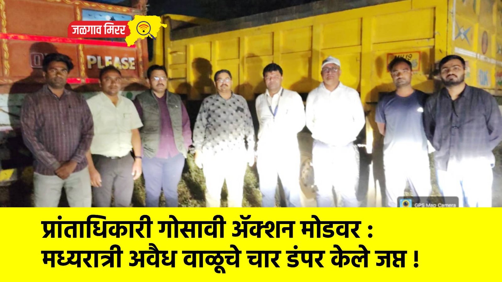 जळगाव शहरालगत असलेल्या गिरणा नदी पात्रातून गेल्या काही दिवसांपासून मोठ्या प्रमाणात अवैध वाळू वाहतूक सुरू असल्याच्या तक्रारी वाढल्या होत्या. या पार्श्वभूमीवर प्रशासनाने कठोर भूमिका घेत प्रांताधिकारी विनय गोसावी यांनी थेट ॲक्शन मोडमध्ये येत मध्यरात्री धडक कारवाई केली.