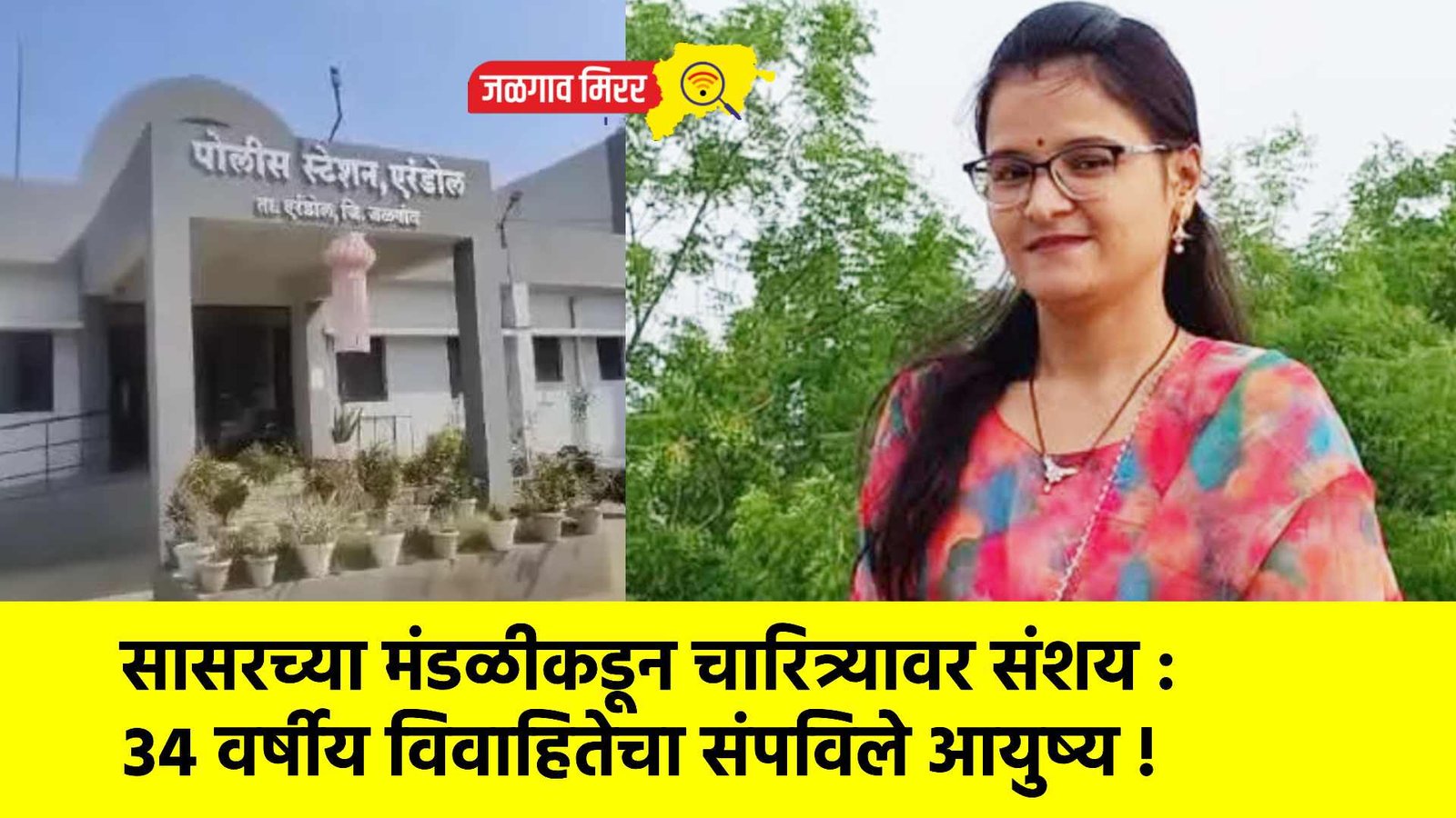 एरंडोल शहरातून एक खळबळजनक घटना उघडकीस आली आहे. सासरच्या मंडळीकडून चारित्र्यावर संशय घेतल्यामुळे होणाऱ्या छळाला कंटाळून येथे जिल्हा मध्यवर्ती बँक शाखेच्या परिसरात राहणाऱ्या मनिषा सागर सोनार (वय ३४) या विवाहित महिलेने घराच्या वरच्या मजल्यावर सिलींगच्या कडीला अडकवलेल्या दोराच्या सहाय्याने गळफास घेऊन आपली जीवनयात्रा संपल्याची घटना ४ जून रोजी रात्री १० वाजेच्या सुमारास उघडकीस आली. याप्रकरणी एरंडोल पोलीस स्टेशनला मृत महिलेचे भाऊ मनोज माधवराव पोतदार यांनी फिर्याद दिल्यावरून गुन्हा दाखल करण्यात आला.