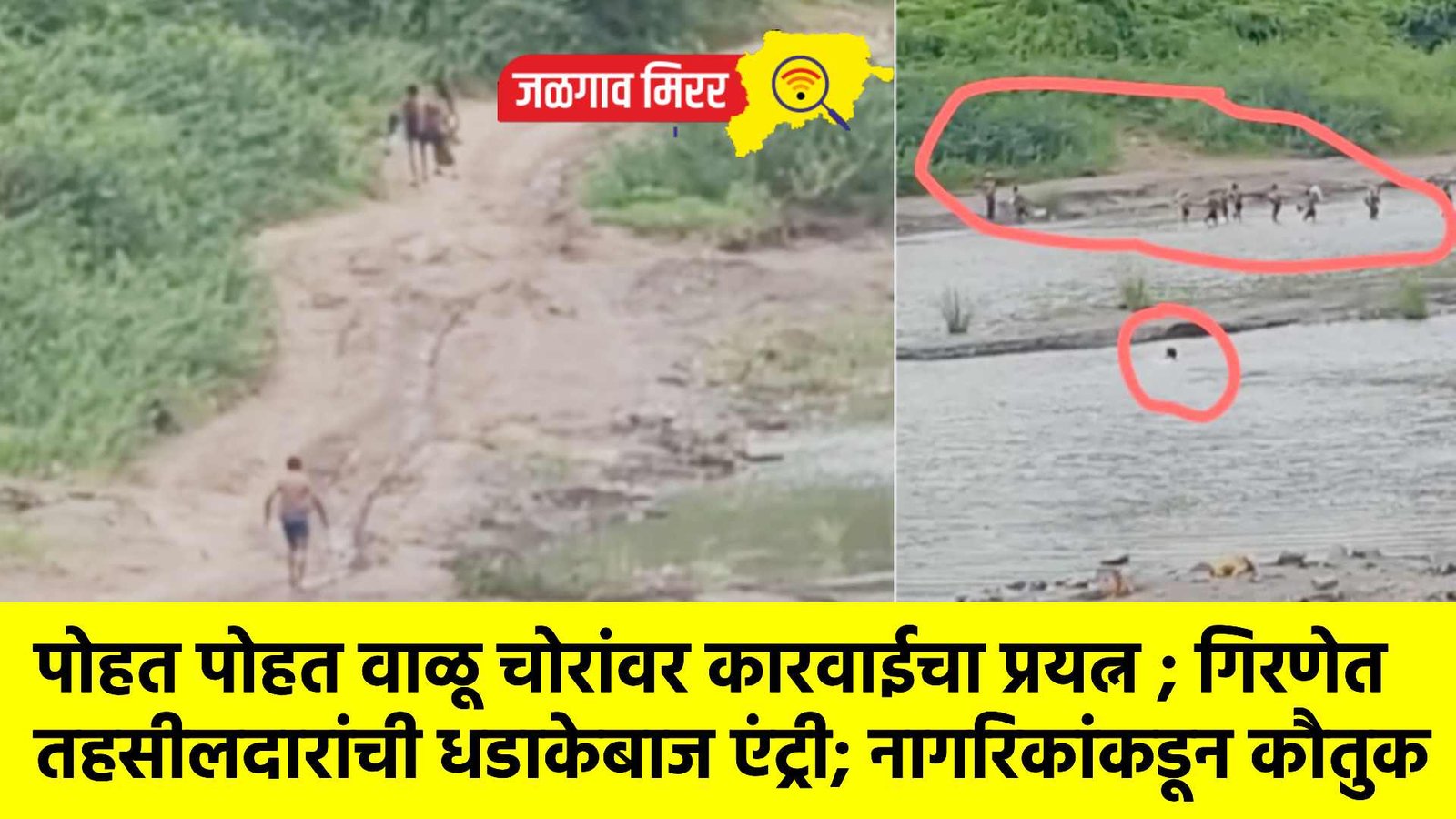 जळगाव जिल्ह्यात मोठ्या प्रमाणात अवैध वाळू सुरू असून यावर प्रशासनाकडून नेहमीच कारवाईचा बळगा उचलला जात असतो तरीदेखील अवैध वाळू चोरी रोखता येत नसते. मात्र आता एका तहसीलदारांचा गिरणा नदी पात्रात पोहत वाळू चोरांवर कारवाईच्या प्रयत्नात असल्याचा व्हिडिओ समोर आल्याने वाळू चोरांमध्ये मोठी खळबळ उडाली आहे.
