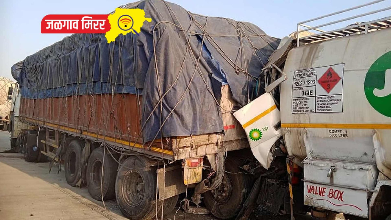 छत्रपती संभाजी नगर येथून बियरच्या बाटल्यांनी भरलेला मालट्रकचे टायर पंचर झाल्याने चालकाने मळढोण शिवारात रस्त्यावर ट्रक (क्र. MH – 20 cT 2932) उभा केला व पंक्चर काढण्याचे काम सुरु असताना त्याच वेळेत भरधाव वेगात नागपूर ते मुंबईकडे जाणारा जिओ कंपनीचा रिकामा असलेला पेट्रोल टॅंकर (mH 29 BE 2519) उभ्या असलेल्या बियरच्या ट्रकवर जाऊन आदळल्याने भीषण अपघात घडला. यामध्ये ट्रकचालक (नाव समजू शकले नाही) ठार झाला. मागून भरधाव वेगात येणाऱ्या जिओ कंपनीचा पेट्रोल ट्रकचालक विजेंद्र मनी तिवारी हे अपघातात मयत झाले आहेत.