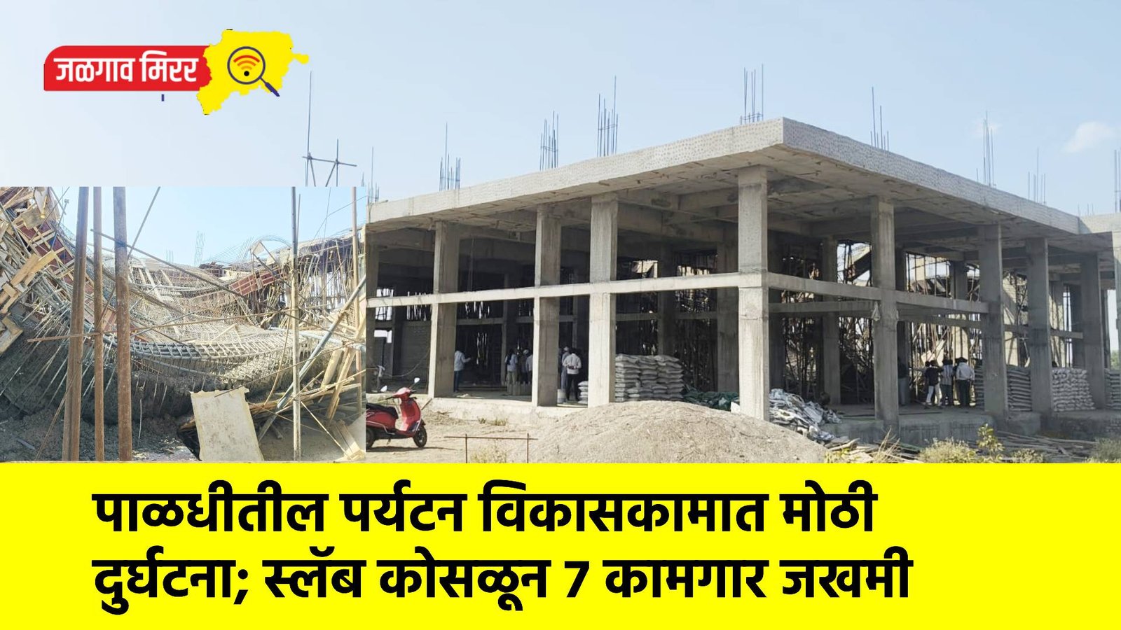 धरणगाव तालुक्यातील पाळधी येथे साईबाबा मंदिर परिसरात सुरू असलेल्या पर्यटन विकास कामादरम्यान आज मोठी दुर्घटना घडली. बांधकाम सुरू असताना अचानक निर्माणाधीन स्लॅब (साचा) कोसळल्याने सात कामगार जखमी झाले असून त्यापैकी दोन जणांची प्रकृती गंभीर असल्याची माहिती समोर आली आहे.