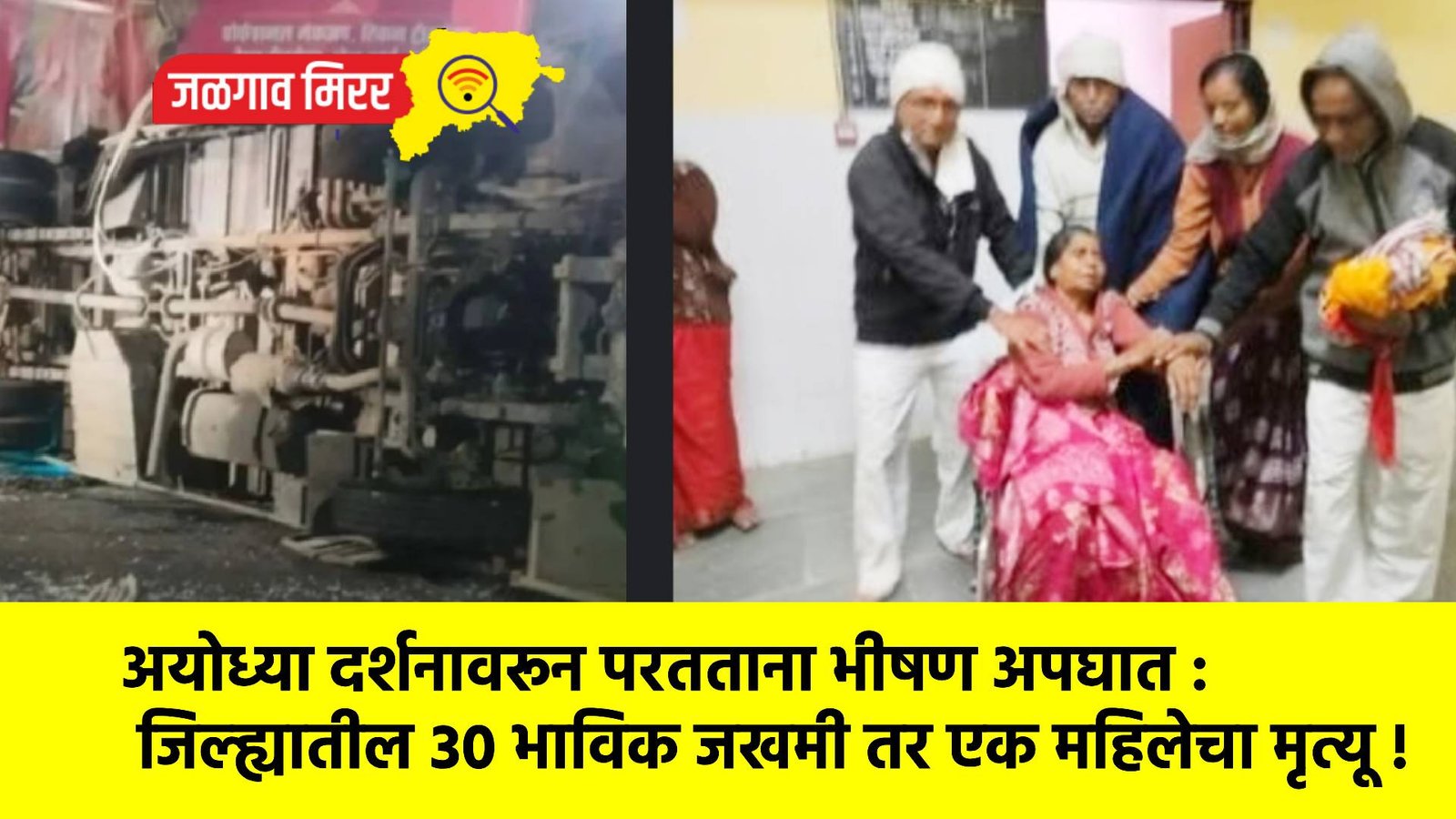 जळगाव जिल्ह्यातील भाविकांच्या वाहनाचा उत्तर प्रदेशातील अयोध्येतील सुलतानपूर लगत अपघात झाला आहे. त्यात जळगाव शहरातील पिंप्राळा येथील एका भाविक महिलेचा बळी गेला आहे. या घटनेत 25 ते 30 जण जखमी झाल्याची माहिती आहे. छोटीबाई पाटील (55) असे मृत महिलेचे नाव आहे.