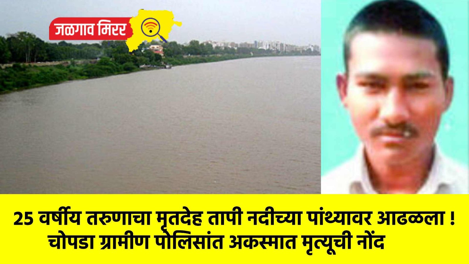जळगाव तालुक्यातील आवार येथील २५ वर्षीय तरुणाचा मृतदेह चोपडा तालुक्यातील वाळकी गावातील तापी नदीच्या पांथ्यावर आढळला. त्यानंतर ग्रामस्थांनी नदीकडे धाव घेत पोलिसांना ही माहिती दिली. दरम्यान, हा तरुण मतिमंद असून शौचाला गेल्यानंतर नदीत पाय घसरून पाण्यात बुडाल्याने त्याचा मृत्यू झाला असावा, असा प्राथमिक अंदाज व्यक्त करण्यात आला आहे.