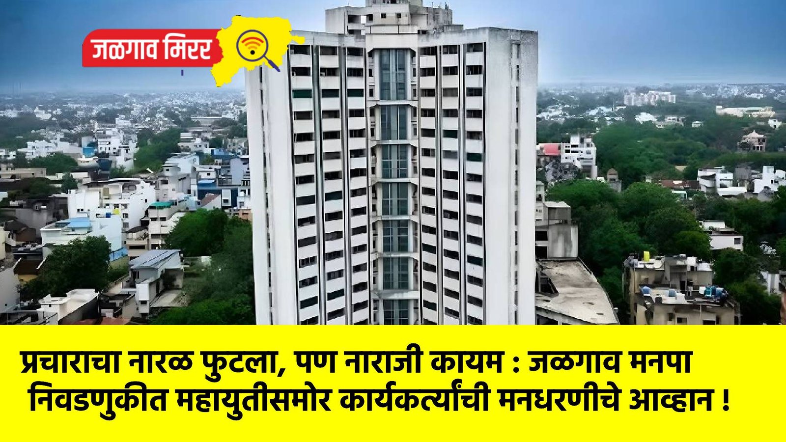 जळगाव महानगरपालिका निवडणुकीच्या प्रचाराला आता वेग येऊ लागला असून अनेक प्रभागांमध्ये प्रचाराचा नारळ फुटण्यास सुरुवात झाली आहे. महायुतीनेही आपला अधिकृत प्रचार जोमात सुरू होणार असून तरी या निवडणुकीत उमेदवारी वाटपामुळे नाराज झालेल्या निष्ठावंत पदाधिकारी व कार्यकर्त्यांची नाराजी अद्याप कायम असल्याचे चित्र दिसून येत आहे.