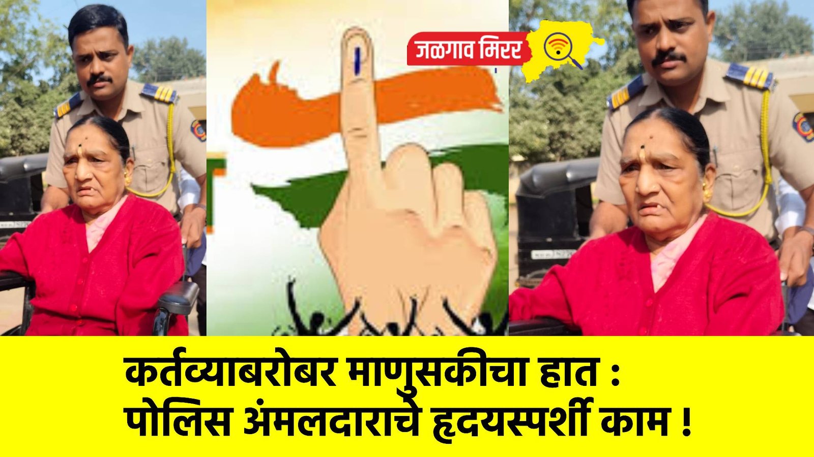 लोकशाहीचा उत्सव सर्वांसाठी सुखदायी व्हावा म्हणून भुसावळ येथे मतदारांना मदत करताना स्थानिक गुन्हे शाखेचे अंमलदार मुरलीधर धनगर यांनी दाखवलेली कर्तव्यनिष्ठा आणि मानवतेची भावना सर्वांचे लक्ष वेधून घेत आहे. मतदानासाठी आलेल्या एका वृद्ध, चालण्यास अक्षम महिलेची अवस्था पाहताच धनगर यांनी तिला आपल्या आईसमान मानत तत्काळ मदतीचा हात पुढे केला.