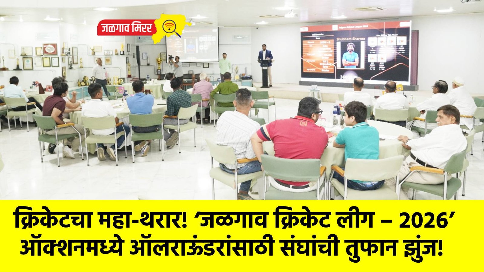 क्रिकेटचा महा-थरार! ‘जळगाव क्रिकेट लीग – २०२६’ ऑक्शनमध्ये ऑलराऊंडरांसाठी संघांची तुफान झुंज!