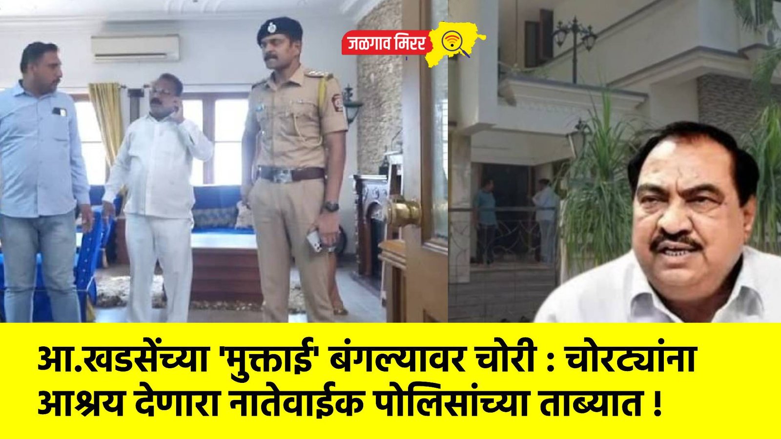 जिल्ह्यातील राष्ट्रवादीचे नेते आमदार एकनाथ खडसे यांच्या बंगल्यात चोरी करणाऱ्या तिघा चोरट्यांना निष्पन्न करण्यात पोलिसांना यश आले आहे. तर चोरी करण्यापूर्वी व नंतर चोरटे मास्टर कॉलनीतील नातेवाइकांकडे थांबले होते. चोरट्यांना आश्रय देणारा नातेवाईक जियाउद्दीन शेख हुसनोद्दीन शेख (वय ३९, रा. मास्टर कॉलनी) याला अटक केली आहे. तसेच गुन्ह्यात वापरलेली दुचाकी देखील पोलिसांनी जप्त केली.
