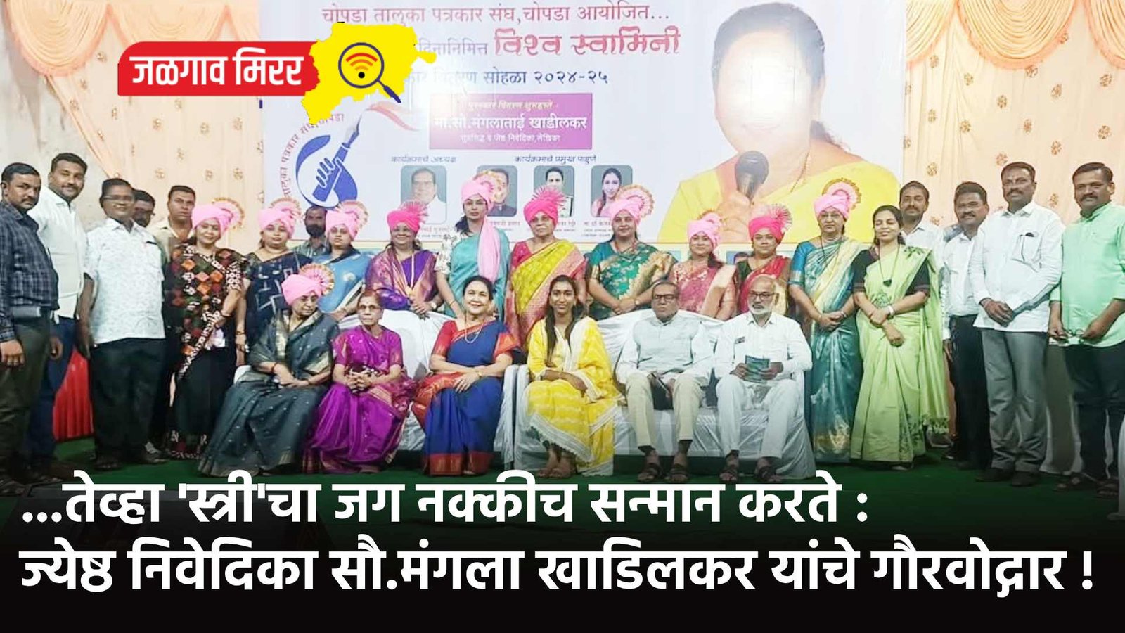 चोपडा येथील नगरपरिषद नाट्यगृहात चोपडा तालुका पत्रकार संघाच्या वतीने जागतिक महिला दिनानिमित्त आयोजित विश्व स्वामिनी पुरस्कार वितरण सोहळ्यात त्या बोलत होत्या. यावेळी मंचावर महाराष्ट्र राज्य विधानसभेचे माजी अध्यक्ष प्रा. अरुणभाई गुजराथी हे अध्यक्ष म्हणून तर प्रमुख अतिथी म्हणून माजी आमदार कैलास पाटील, गोदावरी फाउंडेशनच्या संचालिका डॉ. केतकी पाटील हे मंचावर उपस्थित होते. यावेळी पुरस्कारार्थीतर्फे सौ. रेखा पाटील व डॉ. स्वप्ना पाटील यांनी मनोगत व्यक्त केले. तर डॉ. केतकी पाटील यांनी मनोगतातून पुरस्कारार्थी महिलांचे अभिनंदन करत उपस्थितांना मार्गदर्शन केले. कार्यक्रमाचे बहारदार सूत्रसंचालन संजय बारी व सौ. योगिता पाटील यांनी केले तर आभार प्रदर्शन चोपडा तालुका पत्रकार संघाचे अध्यक्ष लतीष जैन यांनी केले. विश्व स्वामिनी पुरस्कार वितरण सोहळ्यात २५ महिलांचा सन्मानचिन्ह, मानपत्र, शाल, पुष्पगुच्छ देऊन सौ. मंगला खाडीलकर व मान्यवरांच्या हस्ते सन्मान करण्यात आला.