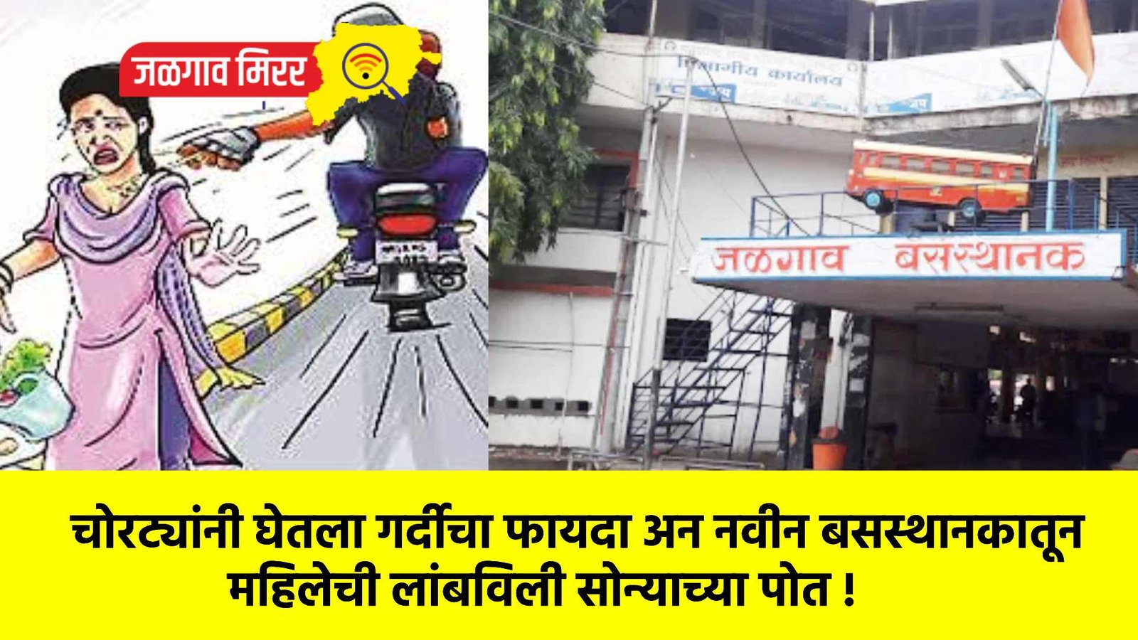 सविस्तर वृत्त असे कि, जामनेर तालुक्यातील हिवरखेडा येथील ज्योती प्रमोद वाघ या जिल्हा परिषदेच्या आरोग्य विभागात आरोग्य सेविका असून त्या सद्या त्या जळगावातील पांडुरंग नगरात राहतात. दि. २१ रोजी सुट्टी असल्याने दुपारी गावी जाण्यासाठी बस स्थानकात आल्या. त्या जामनेर बस मध्ये चढत असतांना त्यांना गळ्याजवळ नवीन काहीतरी ओढल्या सारखे जाणवले. मात्र बसमध्ये गर्दी असल्याने त्यांना ओढणी ताणली गेली, असे वाटल्याने त्या बसमध्ये बसून जामनेर येथे गेल्या. त्याठिकाणी पोहचल्यानंतर त्या दुचाकीने पतीसोबत घरी गेल्या. घरी गेल्यानंतर त्यांना जेठाणी उर्मिला वाघ यांनी तुझ्या गळ्यातील माळ कोठे आहे अशी विचारणा केली. त्यावेळी ज्योती वाघ यांनी गळ्याला हात लावून बघितला असता, त्यांना माळ दिसून आली नाही.