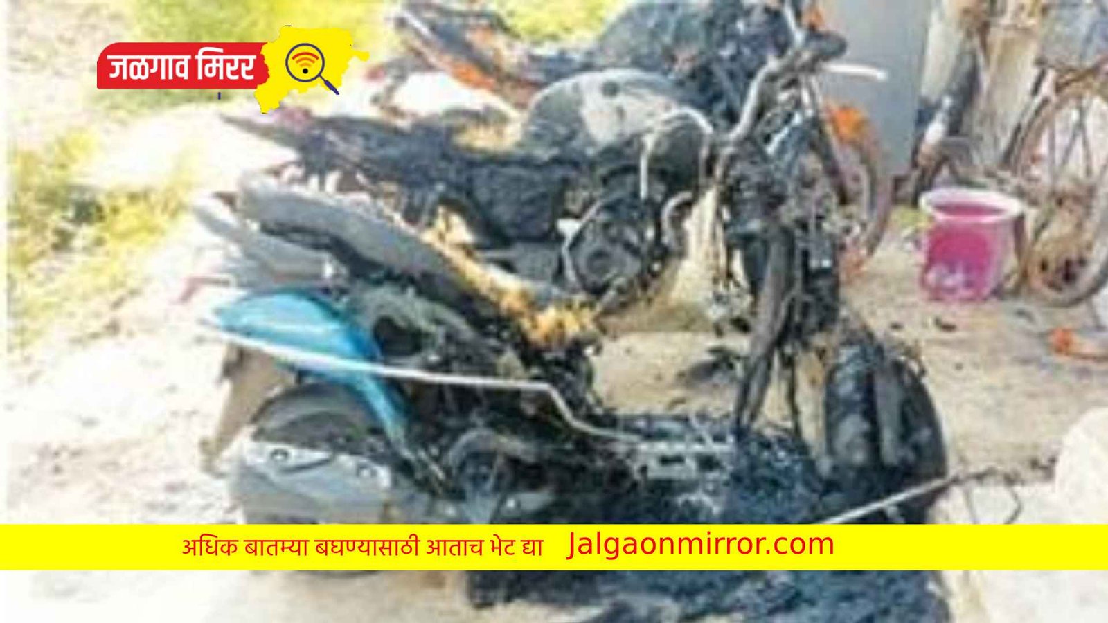 शहरातील व्यापारी दुकाने फोडल्यानंतर चोरट्यांनी आपले लक्ष्य आता घर, मोटारसायकल, वाहनांच्या बॅटऱ्यांवर केंद्रित केलेले दिसत आहे. दुकानांच्या चोरीमध्ये सीसीटीव्ही फुटेजमध्ये चोरटा दिसलेला आहे. मात्र त्याला अद्यापही पकडण्यात यश आलेले नाही. हा प्रकार उघडकीस येत नाही तोच गुरुवारी पहाटे दीड ते तीन वाजेच्या सुमारास जामनेर रोडवरील दत्तनगरात अप्पा फुलचंद सावळे हे पत्नी, दोन मुलांसह राहतात. वडील, मुले हातमजुरी करून आपला उदरनिर्वाह करतात. मुले शिक्षणासोबत इतर कामकाजही करतात त्यासाठी प्रत्येकाची स्वतंत्र अशी मोटारसायकल सावळे यांच्या घरासमोर उभ्या केलेल्या एम.एच. १९ डी.पी. ६२११, एम.एच. १९. डी. टी. ६८६४ व एम. एच. १९ ए. एस. ९३०१ या क्रमांकाच्या तीन मोटारसायकल गुरुवारी पहाटे कोणी तरी अज्ञाताने पेटवून दिल्या. अप्पा सावळे यांना जाग आली तेव्हा त्यांनी शेजारी राहणाऱ्या नागरिकांना उठविले. पण तोपर्यंत दुचाकी जळून खाक झाल्या होत्या.