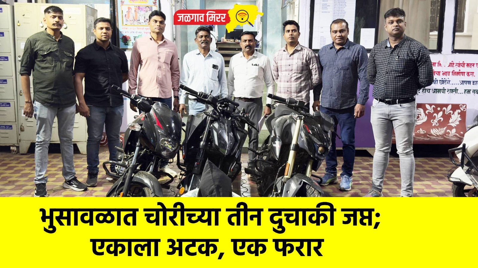 मिळालेल्या माहितीनुसार, दि. ०६ एप्रिल २०२६ रोजी सकाळी सुमारे ११ वाजता स्थानिक गुन्हे शाखेचे पोलीस उपनिरीक्षक रवि नरवाडे यांच्या मार्गदर्शनाखाली पथक इराणी मोहल्ला, रजा टॉवर परिसरात पेट्रोलिंग करत होते. यावेळी एका घराच्या आडोशाला संशयास्पद अवस्थेत उभ्या असलेल्या तीन मोटारसायकली आढळून आल्या. संबंधित वाहनांच्या मालकांचा शोध घेतला असता कोणीही समोर आले नाही.यानंतर पोलिसांनी तीनही दुचाकी भुसावळ बाजारपेठ पोलीस ठाण्यात आणून त्यांच्या चेसिस व इंजिन क्रमांकाच्या आधारे तपास केला. तपासादरम्यान या तिन्ही मोटारसायकली अनुक्रमे मुक्ताईनगर, चोपडा शहर व तोफखाना (अहिल्यानगर) पोलीस ठाण्यात दाखल चोरीच्या गुन्ह्यांतील असल्याचे निष्पन्न झाले. जप्त करण्यात आलेल्या वाहनांमध्ये पल्सर (एमएच-१९-ईएस-३५५५), पल्सर एन-१६० (एमएच-१९-ईटी-३३८०) तसेच केटीएम ड्यूक २५० (एमएच-१६-डीटी-७४३३) या दुचाकींचा समावेश आहे.