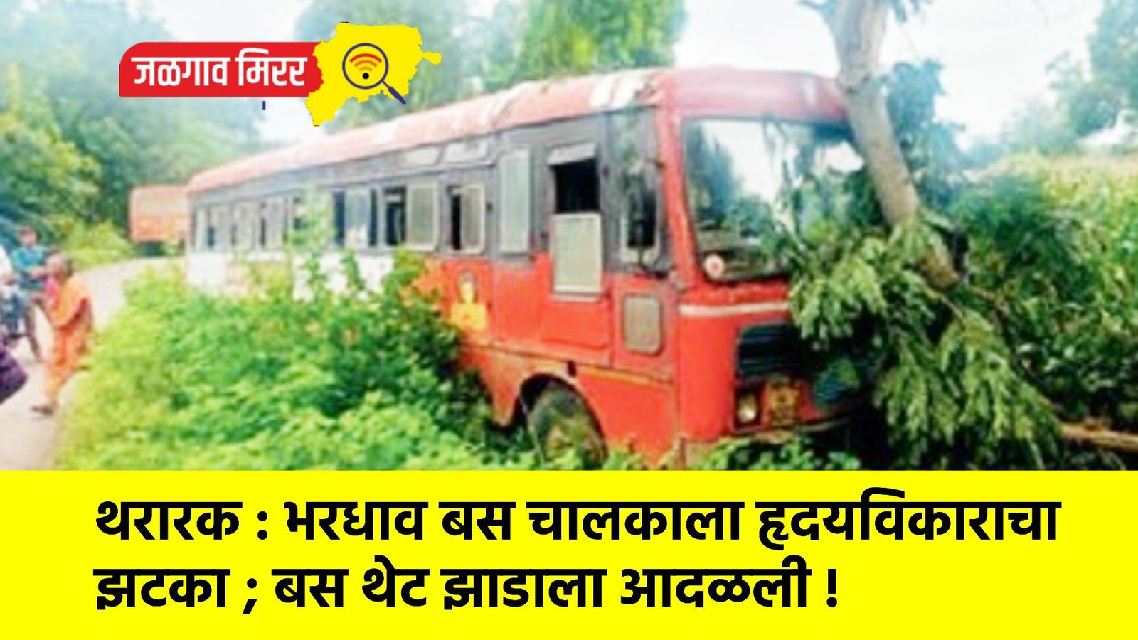 जिल्ह्यातील अनेक ठिकाणी अपघाताच्या घटना सुरु असताना आता बोदवड-भुसावळ दरम्यान धावत्या बसच्या चालकाला हृदयविकाराचा झटका आल्याने त्यांचे बसवरील नियंत्रण सुटले. बस सरळ रस्त्याच्या बाजूला विजेच्या खांबावर आणि नंतर झाडाला आदळली मात्र या अपघातात बसमधील पंधरा प्रवासी बचावले आहेत. ही थरारक घटना भानखेडा, ता. बोदवड नजीक रविवारी दुपारी ३ वाजता घडली.