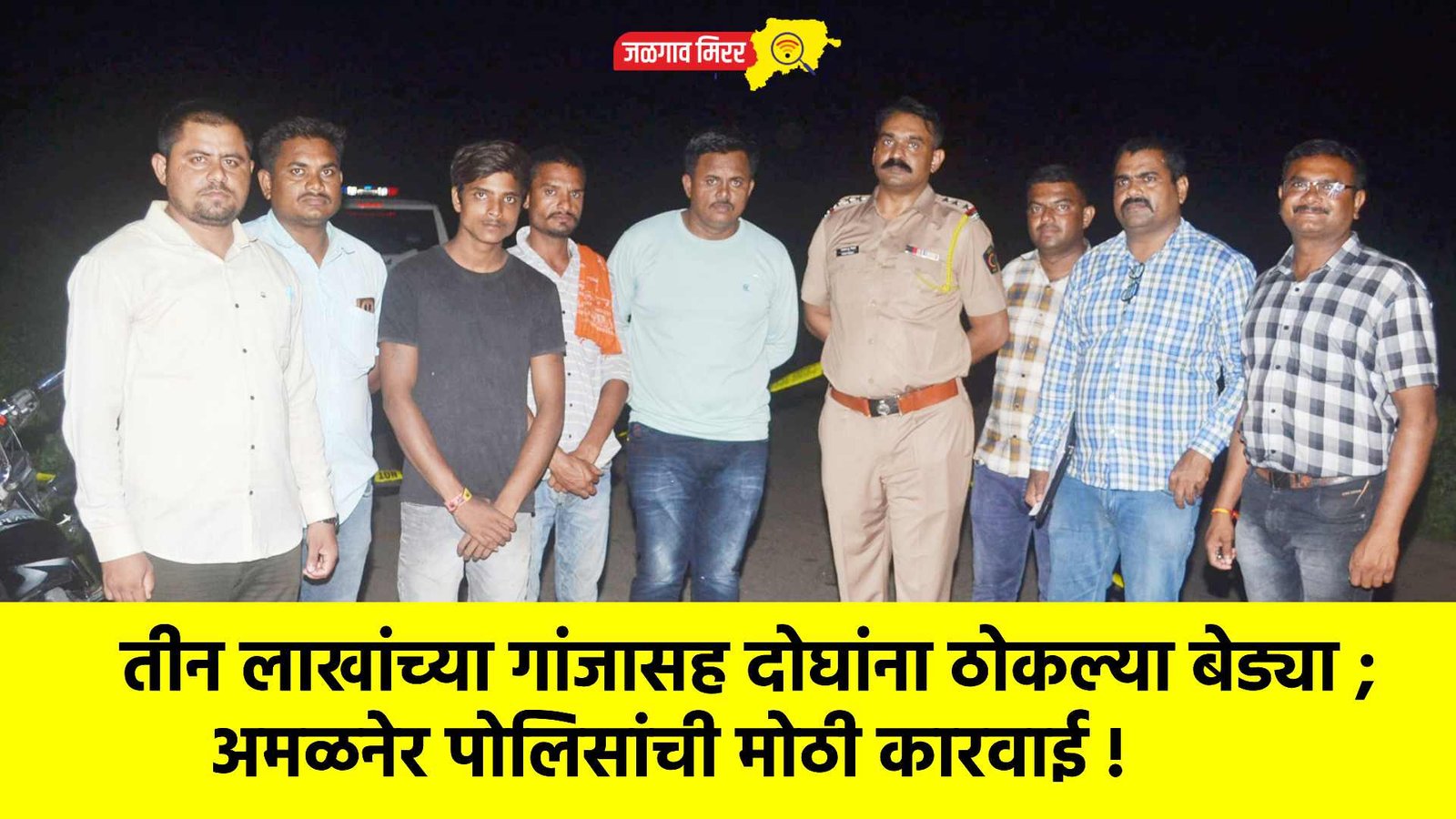 सविस्तर वृत्त असे कि, पोलीस कॉन्स्टेबल अमोल पाटील यांना ही माहिती मिळाल्यानंतर त्यांनी तात्काळ अमळनेर पोलीस ठाण्याचे पोलीस निरीक्षक दत्तात्रय निकम यांना कळवले. या माहितीच्या आधारे, पथकाने मंगळवारी रात्री दहा वाजता जळोद गावाकडून येणाऱ्या फाट्याजवळ सापळा रचला. त्यावेळी (एमएच १९, सीटी ४८४५) क्रमांकाच्या दुचाकीवरून येणाऱ्या दोन संशयितांची पोलिसांनी चौकशी केली. त्यांच्याजवळ असलेल्या एका गोणीमध्ये १५ किलो प्रतिबंधित गांजा आढळून आला, ज्याची अंदाजे किंमत ३ लाख रुपये आहे.