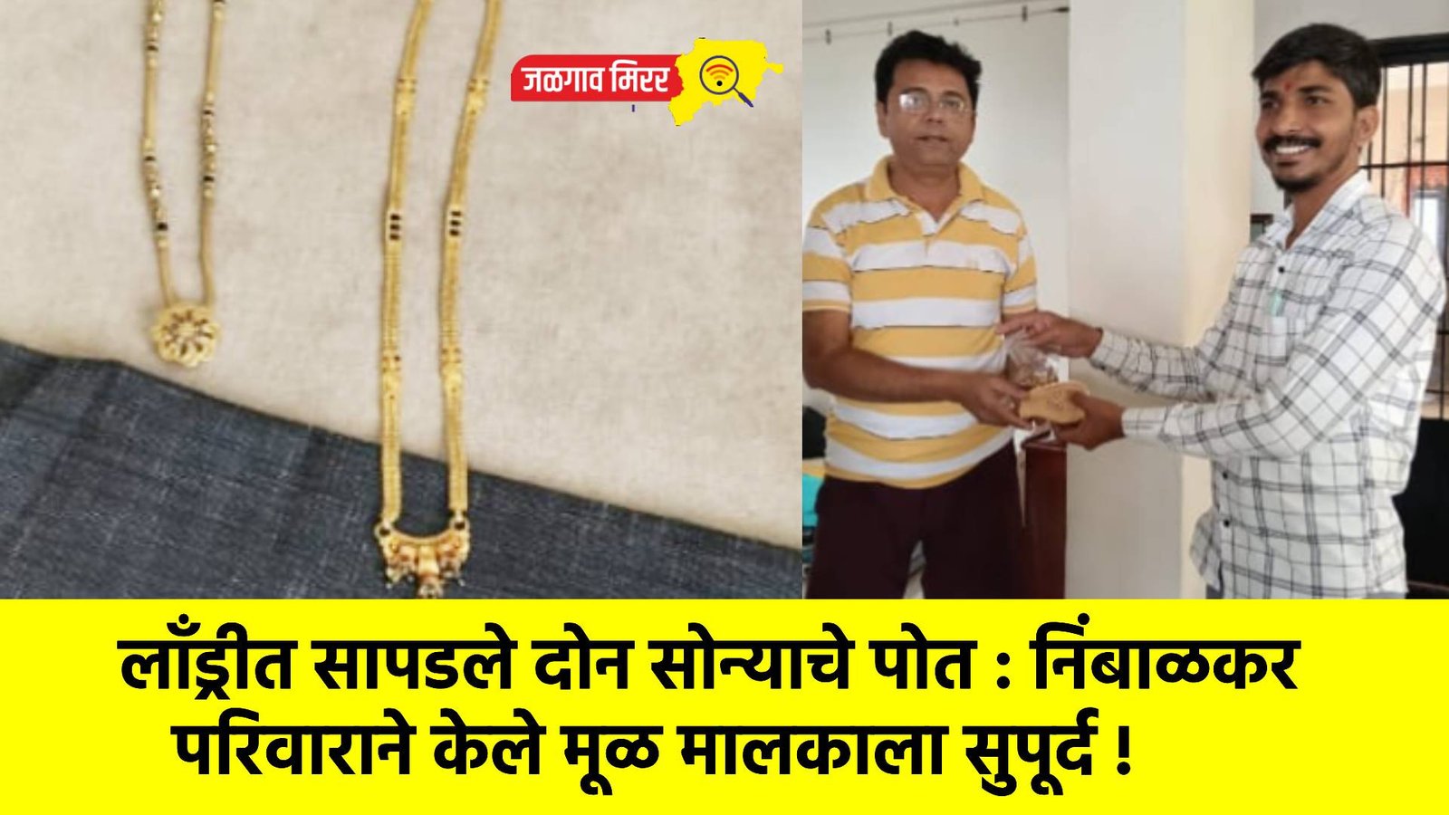दि. 21 रोजी रात्रीच्या सुमारास याच अपार्टमेंटमधील रहिवासी श्री. भावसार यांनी आपले कपडे प्रेस करण्यासाठी लाँड्रीमध्ये दिले होते. दुसऱ्या दिवशी सकाळी योगेश निंबाळकर कपडे प्रेस करत असताना त्या कपड्यांमध्ये दोन सोन्याच्या पोत आढळून आल्या. सोन्यासारख्या मौल्यवान वस्तू मिळूनही कोणताही विलंब न लावता त्यांनी तत्काळ भावसार यांच्या घरी जावून मुद्देमाल परत सुपूर्द केला.