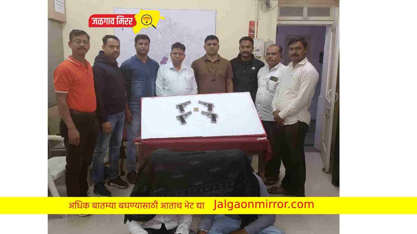 वरिष्ठ पोलीस निरीक्षक किसन नजनपाटील, यांना गुप्त बातमीदार बातमी मिळाली की, शिडी जि. अहमदनगर येथील काही इसम हे उमटी (मध्यप्रदेश) येथे गावठी पिस्तोल जिवंत काडतुस विकत घेण्यासाठी हुंडाई कंपनीची बहन पांडया रंगाची चारचाकी गाडी तिच्या मागच्या नंबर प्लेटवर अध्यक्ष टायगर ग्रुप श्रीरामपुर असे असून क्र.MH-१५/DM७७७८ अशा गाडीने आलेले आहेत. ते चोपडा कडून सिड जि. अहमदनगर येथे जाणार आहेत अशी खात्रीशिर बातमी मिळाली आहे. त्याप्रमाणे त्यांनी त्यांचे अधिनस्त पोलीस अंमलदार पोर्जन, श्री. अमोल देवडे, पोहेकॉ सुनिल पंडीत दामोदरे, पोहेकी महेश आत्माराम महाजन, पोना रविद्र रमेश पाटील, पोना परेश प्रकाश महाजन, पोको दिपककुमार फूलचंद शिंदे, चापोक मुरलीधर सखाराम बारी यांचे पथक तयार करुन त्यांना मिळालेली गुप्त बातमी प्रमाणे चोपडा शहरात शिवाजी चौकात उमटी कडून येणान्या रस्त्यासा लावून संशयीत वाहने चेक करीत असतांना २३.०५ वा. वरील संशयीत चारचाकी गाडी MH- १५/DM७७७८ ह आल्यावर पथकातील सर्व पोलीस अधिकारी व अंमलदार यांनी सदर वाहनास घेरून सदर गाडीतील दोन इसमांना पकडून त्यांची चारचाकी हुंडाई कंपनीची व्हन क्र.MH-१५/DM७७७८ गाडीची झडती घेतली असता सदर वाहनाच्या पायदान खाली ०४ गावटी पिस्तोल, व दोन्ही आरोपीतांच्या पैन्टच्या खिश्यात प्रत्येकी ०५ जिवंत काडतूस मिळून आलेले आहेत. सदर आरोपी १) राजेंद्र ऊर्फ पप्पू भिमा चव्हाण वय ३२ मूळ रा. खंडाळा ता. श्रीरामपुर जि. अहमदनगर, हवाई क्र. ३ श्रीरामपुर जि. अहमदनगर, २) गणेश ज्ञानेश्वर सातपुते वय २७ रा. शिरसगाव ता. श्रीरामपुर जि. अहमदनगर यांना ताब्यात घेतण्यात आलेले असून त्यांचे कडून ०४ गावटी पिस्तोल १० जिवंत काडतूस, ०३ मोबाईल हॅण्डसेट ०१ कंपनीची व्हर्ना क्र.MH-१५/DM७७७८ चारचाकी वाहन असे एकूण ८.०८,३००/- रुपयाचा माल जप्त करण्यात आलेला आहे. यातील आरोपी १) राजेंद्र ऊर्फ पप्पू भिमा चव्हाण वय ३२ मूळ रा.खंडाळा ता. श्रीरामपूर जि. अहमदनगर ह.मु.वार्ड क्र. ३ श्रीरामपुर जि. अहमदनगर याचेवर अहमदनगर जिल्हयांत रेकॉर्डवरील गुन्हेगार असून बरेच गुन्हे दाखल असल्याचे समजून आले आहे. सदर कारवाई संदर्भात चोपड़ा शहर पो.स्टे. CCTNS नं. ४५९/२०२२ भारतीय हा कायदा क.३/२५ प्रमाणे गुन्हा दाखल करण्यात आला आहे. स्थानिक गुन्हे शाखा, जळगाव पथकाने जिल टोळी पकडून चांगली कामगिरी केलेली आहे.