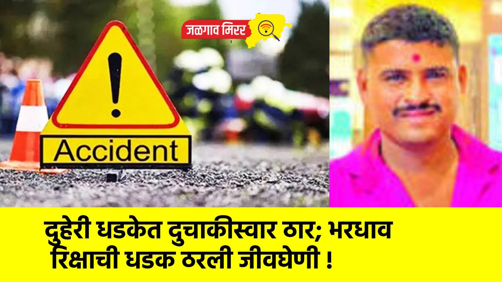 फळ विक्री करुन घराकडे निघालेल्या समाधान बापू भोई (वय ३२, रा. भालगाव, ता. एरंडोल) या तरुणाच्या दुचाकीला समोरुन भरधाव वेगाने येणाऱ्या रिक्षाने धडक दिली. दुचकीस्वार हा रस्त्यावर कोसल्यानंतर मागून येणाऱ्या दुचाकीवर आदळून त्याचा जागीच मृत्यू झाला. ही घटना बुधवार दि. १ एप्रिल रोजी दुपारी ३ वाजेच्या सुमारास खेडीगावाजवळील महामार्गावर घडली. याप्रकरणी पोलिसात अकस्मात मृत्यूची नोंद करण्यात आली आहे.