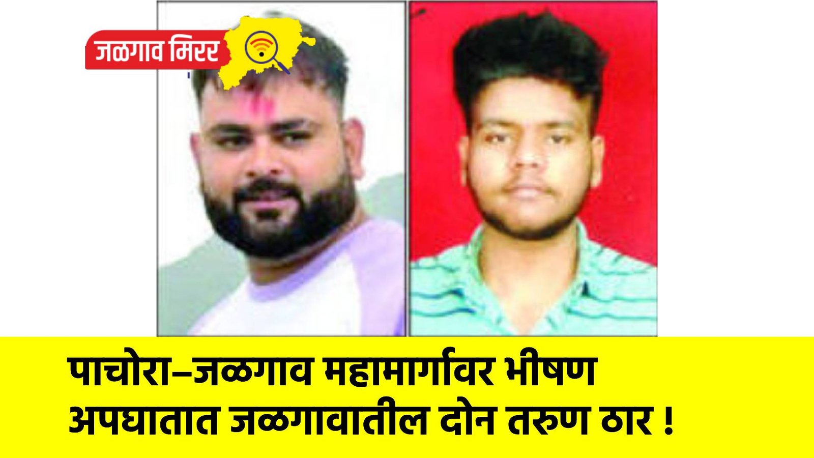 कार वेगात असल्याने चालकाचा ताबा सुटून वाहन रस्त्याच्या कडेला जाऊन जोरात आदळल्याचा प्राथमिक अंदाज व्यक्त करण्यात येत आहे. या अपघातात पिंप्राळा येथील प्रसन्न रवींद्र निमजे (वय २३) व श्रीरंग सुरेश पाटील (वय २७) यांचा जागीच मृत्यू झाला.
