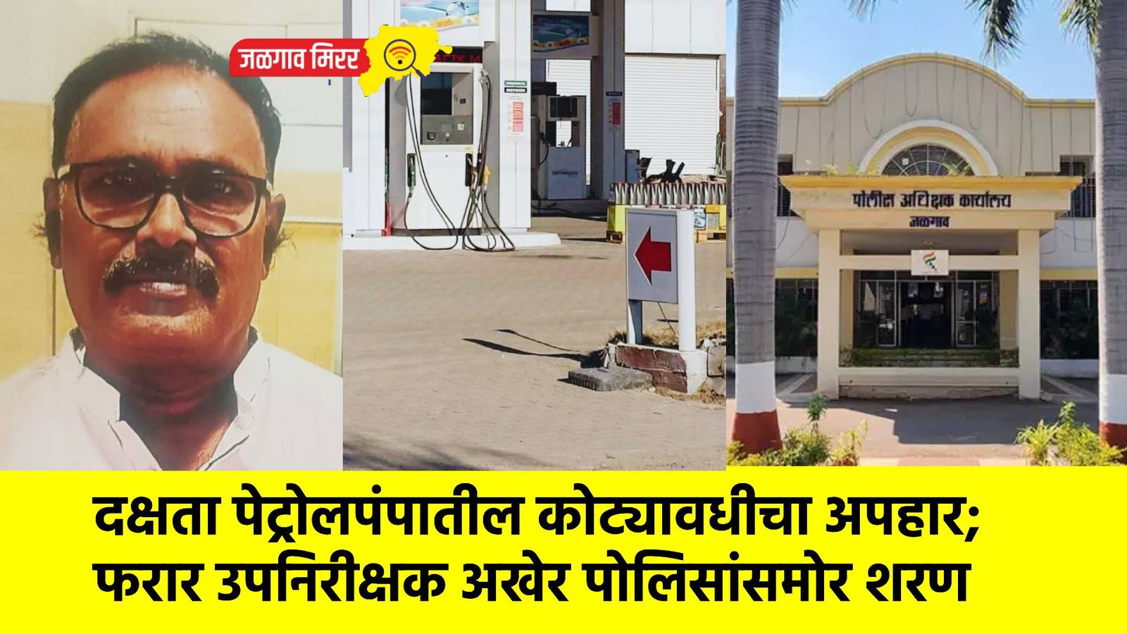 पोलिस दलाच्या दक्षता पेट्रोलपंपाच १ कोटी ३३ लाख ७५२ रुपयांचा अपहार करणारा व्यवस्थापक पोलीस उपनिरीक्षक वाल्मीक मधुकर वाघ गेल्या महिनाभरापासून फरार होता. महिनाभरापासून स्थानिक गुन्हे शाखेकडून त्याचा शोध घेवूनही तो मिळून येत नव्हता. अखेर सोमवारी दुपारच्या सुमारास संशयित वाल्मिक वाघ हा पोलिसांना स्वतःहून पोलिसांना शरण आला. त्याची प्राथमिक चौकशी केल्यानंतर त्याचा वाघ यांच्यासह मुलगा शेखर वाल्मिक वाघ (वय ३३, रा. साईनगर निमखेडी शिवार) या दोघांना अटक करण्यात आली आहे.