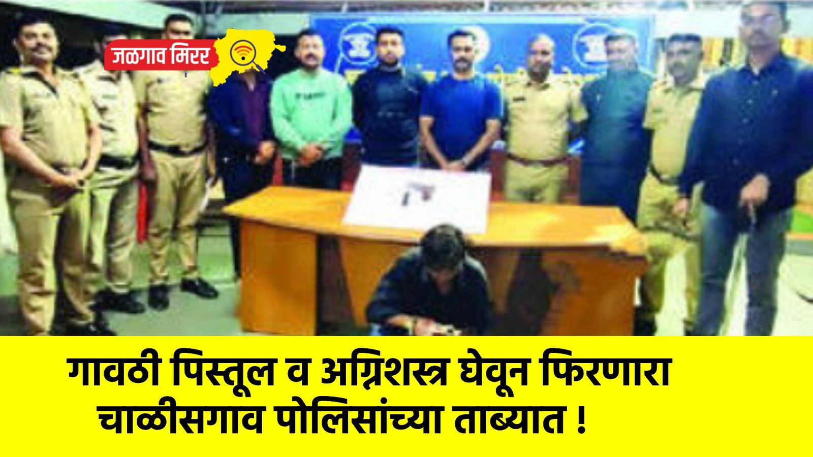 चाळीसगाव शहरातील छाजेड ऑईलमिलच्या पाठीमागे घाटरोड ते हुडको त्रिमूर्ती बेकरीकडे जाणाऱ्या रोडवर एक व्यक्ती गावठी पिस्तूल व अग्निशस्त्र घेऊन येत असल्याची माहिती पोलिसांना मिळाली होती. त्यानुसार पोलिसांनी मयुर राजू मोरे, रा. प्रभात गल्ली, चाळीसगाव यास थांबवून विचारपूस करत त्याची झाडाझडती घेतली असता ३२ हजार रुपये किंमतीची गावठी बनावटीची पिस्तूल व २ राऊंड हस्तगत करण्यात आली.