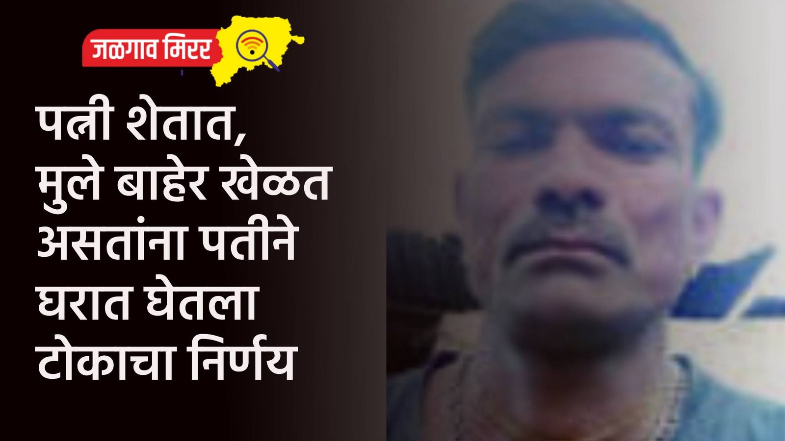 सविस्तर वृत्त असे कि, जळगाव तालुक्यातील पिलखेडा येथील दीपक भालेराव व त्यांच्या पत्नीदेखील शेतीकाम करतात. पत्नी रविवारी सकाळी दीराणीसोबत शेतात गेलेल्या होत्या. तसेच त्यांची दोन्ही मुले घरासमोर खेळत होते. त्या वेळी घरात एकटेच असलेल्या दीपक यांनी गळफास घेत आपली जीवनयात्रा संपविली. नळाला पाणी आल्याने त्यांचा मोठा मुलगा धीरज हा पाण्यासाठी घरात भांडे घेण्यासाठी गेला. त्या वेळी त्याला वडिलांनी गळफास घेतल्याचे दिसले. तो तसाच धावत आला व त्याने आजूबाजूच्या नागरिकांना हा प्रकार सांगितले. शेजारील मंडळी व भावांनी त्यांना शासकीय वैद्यकीय महाविद्यालय व रुग्णालायत नेले असता तेथे डॉक्टरांनी मयत घोषित केले. दीपक यांना दोन मुले असून मोठा मुलगा धीरज हा नुकताच दहावी उत्तीर्ण झाला. तर लहान मुलगा सिद्धार्थ हा इयत्ता नववीला आहे. मयताचे भाऊ व आई-वडीलही गावातच राहतात. याप्रकरणी पोलिसात अकस्मात मृत्यूची नोंद करण्यात आली आहे.